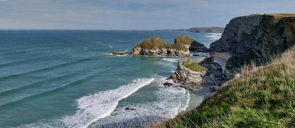 Had a childhood holiday somewhere around there – I have to say Mawgan Porth looks very familiar – are that holiday chalets at the back of the bay, I wonder? It looks like a magical place to walk, swim or surf. And warm sunshine – a massive bonus this year!