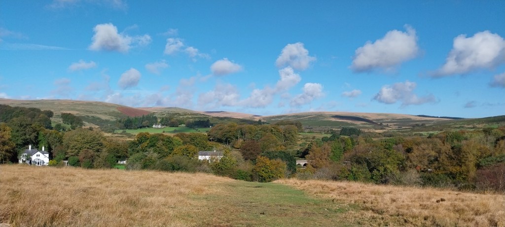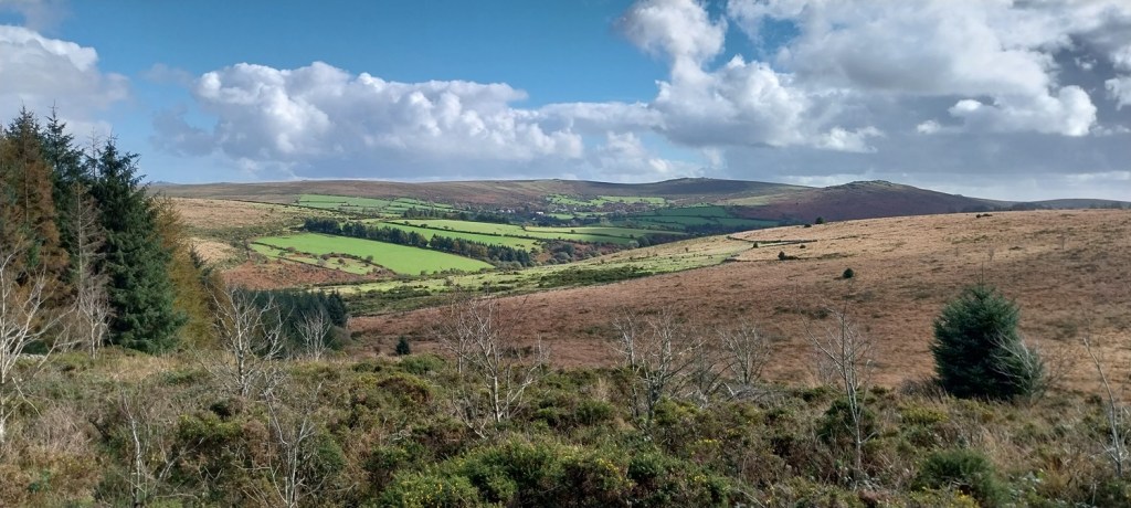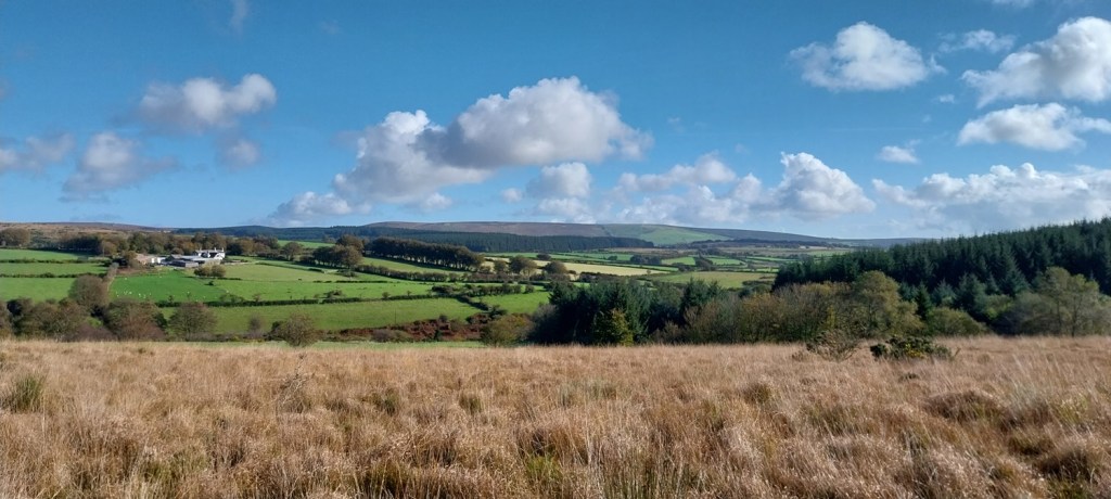 Looking across to Hameldown, lovely blue skies and white fluffy clouds above us today