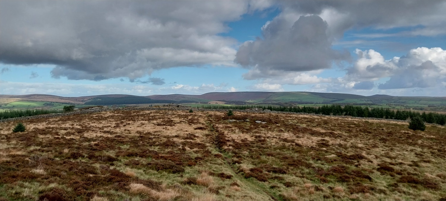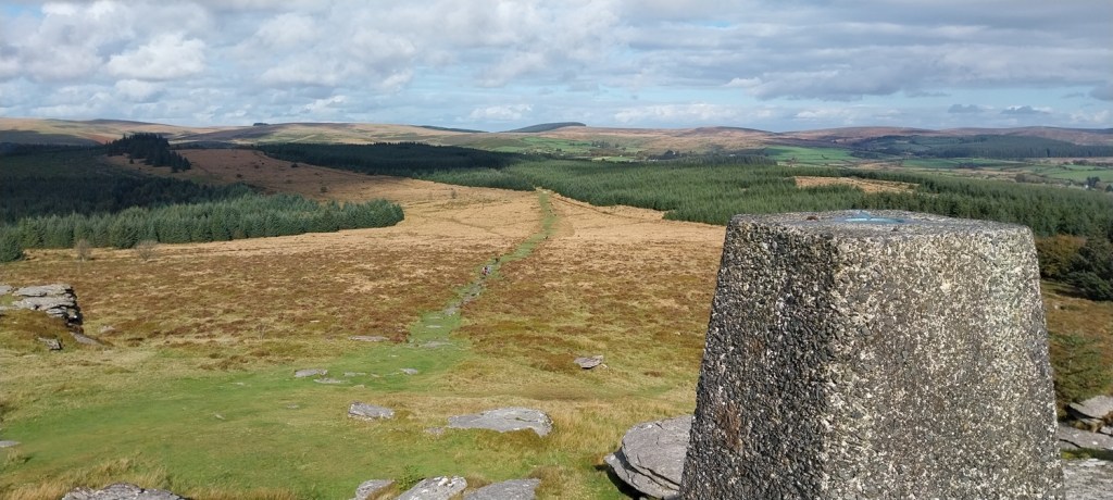 Summit of Bellever Tor, I waited for a lunch eating family to leave the trig point before I took my photos and then left the summit to have my lunch. Not a fan of those that choose to sit and have a break right where people want to take a photo. Like they own the joint. Anyhoo that’s Assycombe Hill centre back and White Ridge to the left of that. The path below leads down and then left to Lakehead Hill