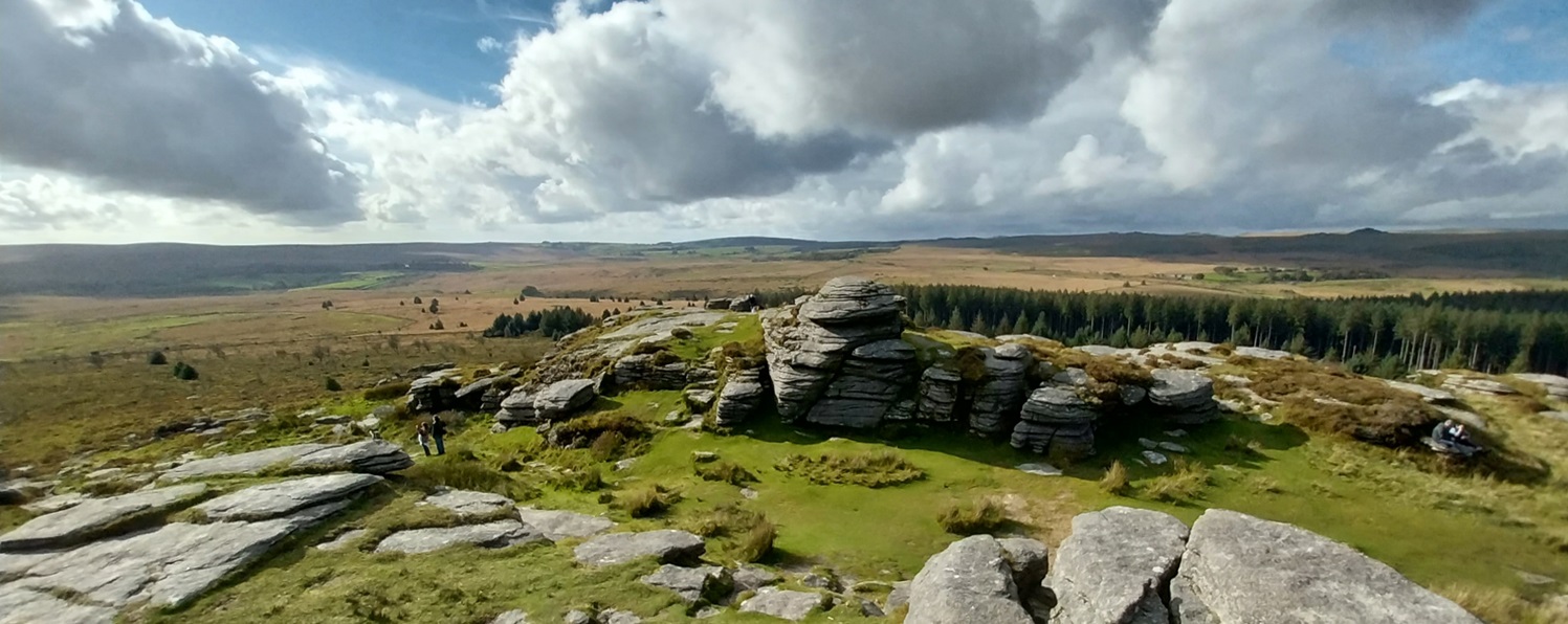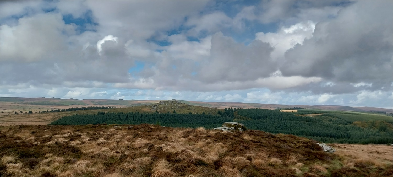 On Laughter Tor now and the views to Hameldown in the east