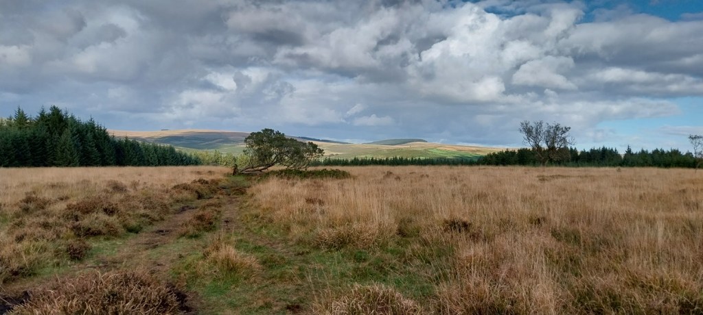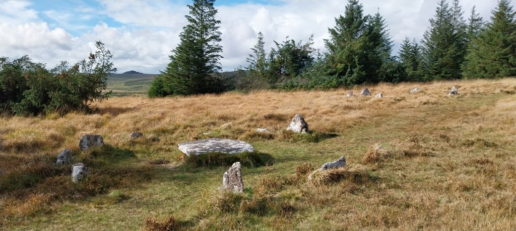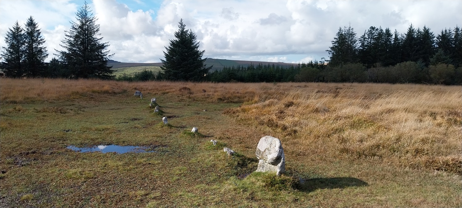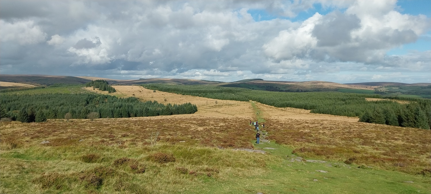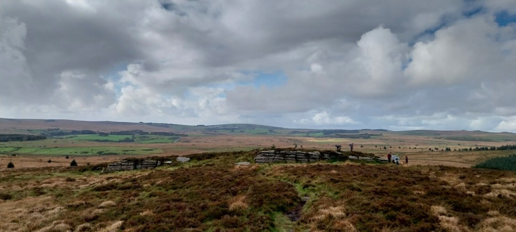 Heading down from Bellever Tor, we would follow the yellow grass to the left to Lakehill Head, home of a stone row and cairn circles.