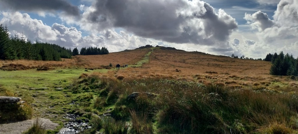 Climbing away from Postbridge. Broad Down on the left with the White Ridge to the right