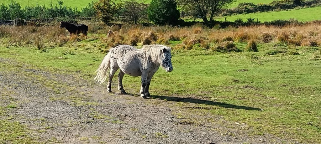 Dartmoor pony. Bellever has an enclosure around it (signs on the gates ask for the public to close the gates on entry and exit), this is to protect the ponies and their breeding. Mixing with normal horses on the moor has left lots of the population to become more of a hybrid type, these in here are the real deal.