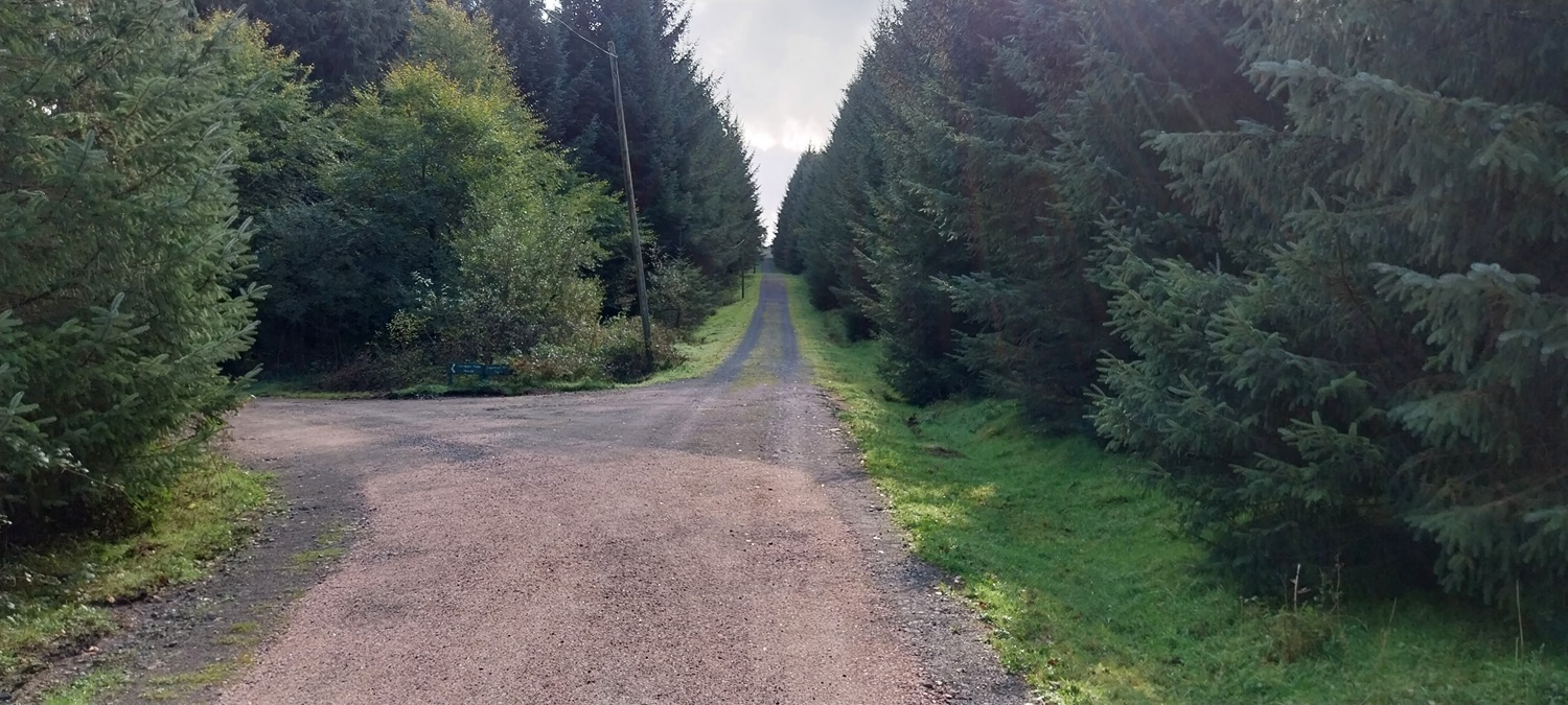 As we pop out of the forest, just past the farm, we are treated to this fine view towards Yar Tor and Corndon Tor