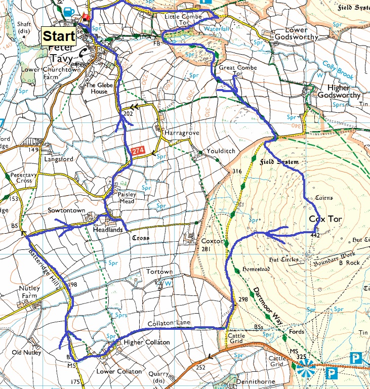 We quite like the pub at Peter Tavy, so its a good village to start and finish in