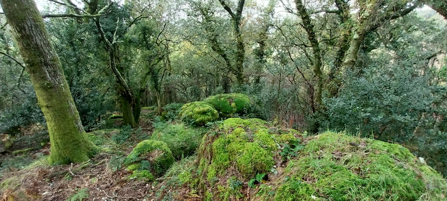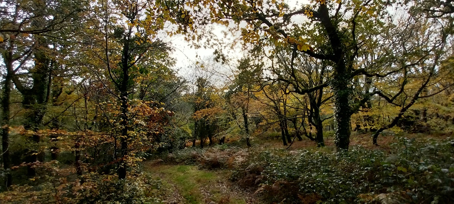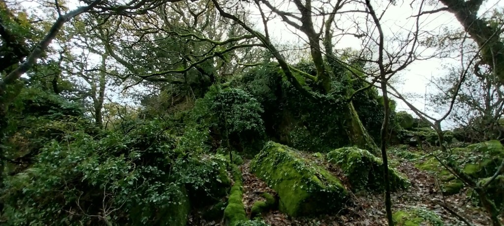 After the fun looking at mushrooms we headed off path and downhill to Aller Down Copse Tor
