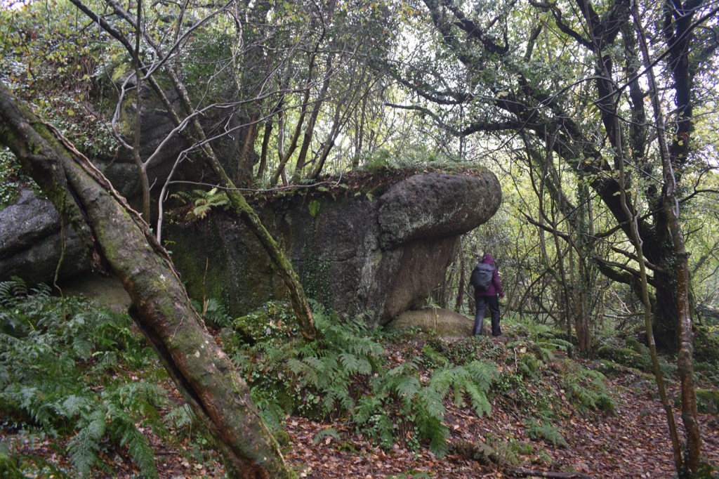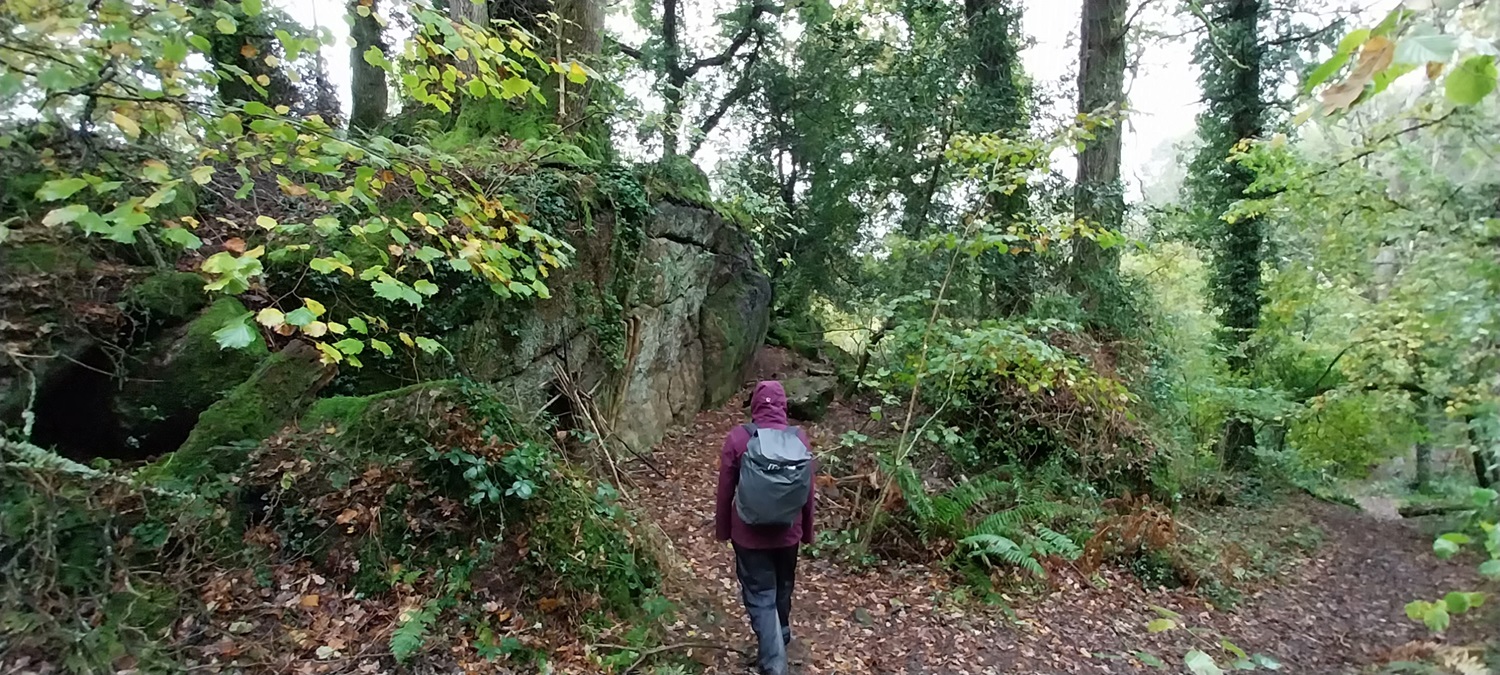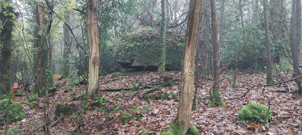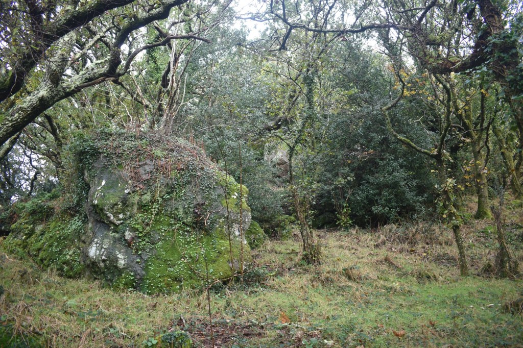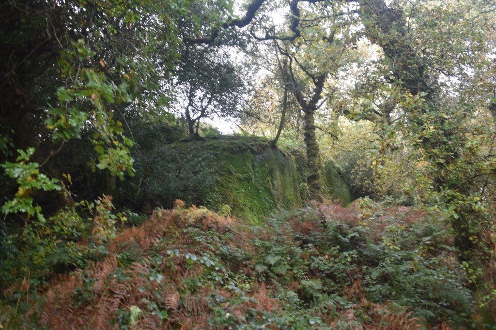 I always enjoy walking in Shaptor Woods, and when looking at the tors I have left to complete my 500 list for a second time, I realised that a few were in or around this gorgeous woodland. It wasn’t just the changing colours on the leaves that I enjoy in here, but the size of the tors needs to be seen to be believed. Normally when walking through here I head up to Shaptor Rock and then out of the woodland towards Higher Bowden. Not this time, we carried on northwesterly towards Gladstone Rock and out along a lane to Poolmill Cross, before following the lanes to Bottor Rock and then the car. As a result of picking up some of my second round tors, the walk through Shaptor Woods headed off path a couple of times, firstly to get to Aller Down Copse and then Northcombe Copse. As always when heading through here, the couple of miles of distance, seems to take at least twice as long as it should to walk it. As a result a short walk of 6 or so miles took over 4 hours, but then again its always good to have a good look around in these places and discover previously unseen buildings or outcrops. The lane walking was simple all the way to Bottor Rock, fairly flat and quick to cover the ground. To get to Bottor Rock involves stepping over some fallen down barbed wire and into a woodland, which may well be part of the house below. The detour to the rock is short, maybe 20 metres, a quick photo and then back to the lane down to Five Lanes. The weather improved the further we walked thankfully, allowing us to dry our waterproofs before putting them in the car. Something that we have got used to walking in a very wet November.