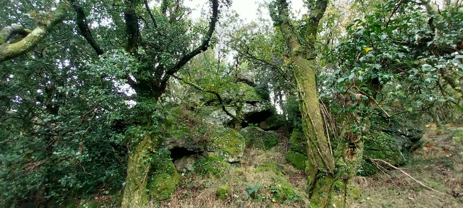 The overhanging rock and the one above is part of Rooks Hole Tor
