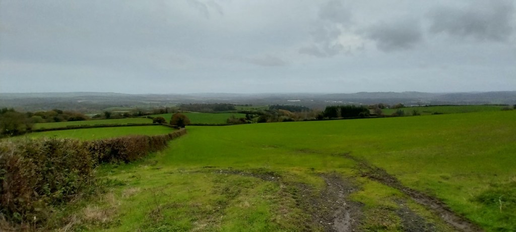 And to finish a better view than when we started. We can now see Bovey Tracey down there across green fields which have been soaked regularly during October and November. Bring on the drier, colder weather.