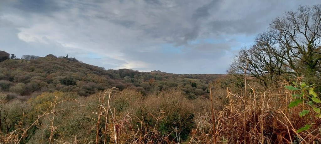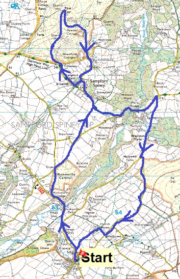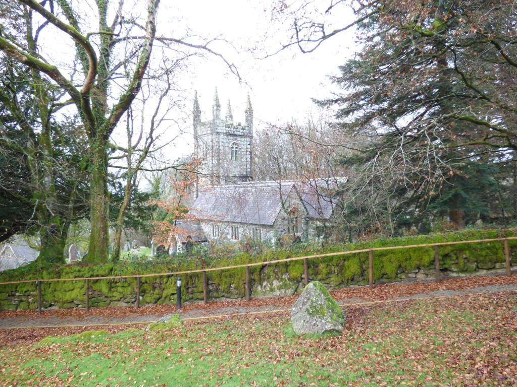 A walk that suits the winter weather, with plenty of lanes, villages, Dartmoor squares and a short dart on to Dartmoor proper for a couple of tors, before leaving via the lanes again. This walk is number 39 of my second round, picking up O4, O5, P4, P5 and Q4. The walk started from the little village of Walkhampton before we headed down to Huckworthy Bridge and then onwards to Sampford Spiney and the church there. We then headed out to Pew Tor just as the rain started to fall, we managed to find a nice overhanging boulder for lunch. Looping back to Sampford Spiney we headed downhill to Ward Bridge before climbing again along more lanes and finally reaching the Walkhampton Church and House. Overall we were pretty lucky with the weather considering that for a month and a half we’ve had far more rainy days than dry ones, here we just had the one shower at Pew Tor. A lovely corner of South West Dartmoor, and an area we will come back to again this winter as there is another walk around Horrabridge and up on to Plaster Down to complete.