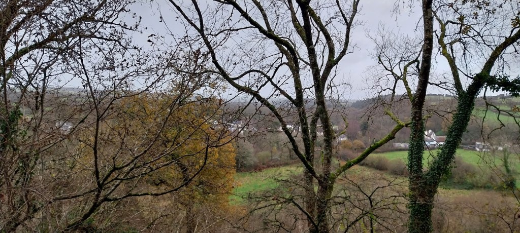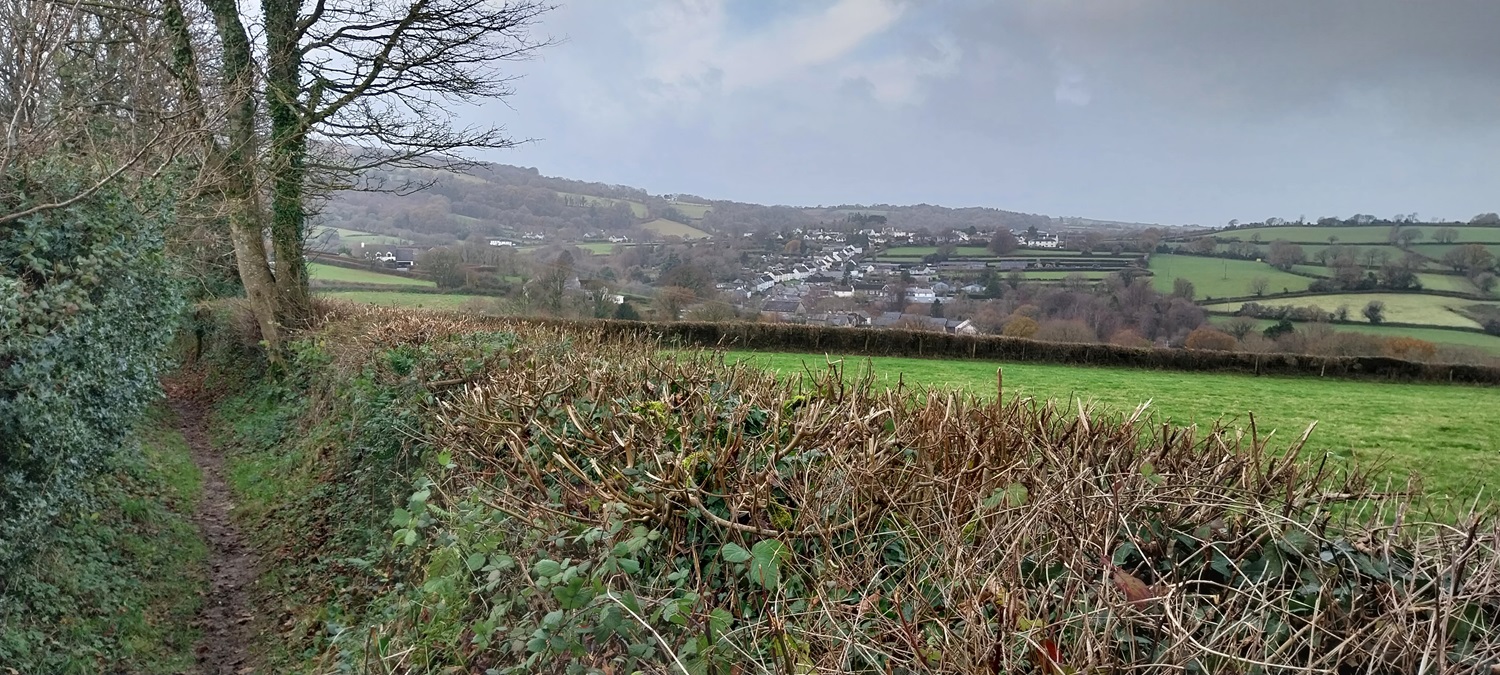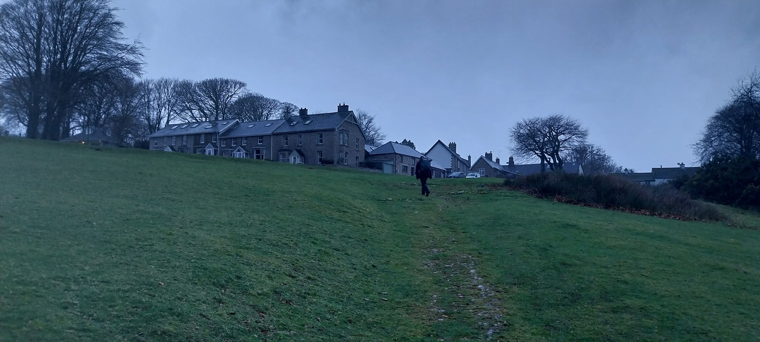Not since Bonfire Night have we had a proper walk with some sunshine in it, this walk was done in the second week in December and still no yellow disc in the skies above us. As I type here I can hear the wind howling outside as another named storm barrels through. Its not been much fun for us down here in the southwest, regarding the weather. We’ve missed out on those clear, cold, blue sky days that I’ve seen up in Yorkshire, Lake District and Scotland, and snow hasn’t been here for more than a few hours at Princetown, one midweek day. Just day after day of dreary drizzle, low cloud, mist and clag. Still we’ve been out, walking the lanes around the edge of Dartmoor, picking off the odd tor, villages, Dartmoor 365 squares and a pub or two. This walk is number 40 on my Round 2 of the squares and will gather A10, A11, A12, B10, B12 and B13. These are good walks for the winter months, no messing with the boggy ground on the moor proper which cake you in mud, instead we look to link the villages through quiet lanes and try to stay out of any muddier paths. This walk involves 4 of the best villages on the moor, Belstone sitting on the edge of the moor and its cleave, has a church and a great pub. Sticklepath has Finch’s Foundry, a church and pub. South Tawton has a B&B restaurant, old church and ancient church house, finally we have South Zeal with 2 pubs, chapel, cross and shop. All the villages come with the expected thatched cottages in abundance, quaint lanes, the odd cafe, school and play parks. These are lovely places to walk and mix it in with a few tors along a cleave and you have a very good walk. As we approached Belstone at the end we were indeed enjoying ourselves and then we hit a patch of path that was covered in a large puddle, Linda’s foot went in after we had negotiated 75% of the puddle and resulted in a damp sock, so no pub for us to finish, instead back to the car as the rain started to fall heavily. We sat in the car drinking the last of our coffee as the rain lashed down and were happy that we’d reached the car in time as around 10 others trudged through the downpour to their vehicles. Maybe 2024 will bring some sun. I will do my best to get another walk on my site before Christmas, however if I don’t I will take this opportunity to wish you all a Merry Christmas, and happy walking over the holidays.