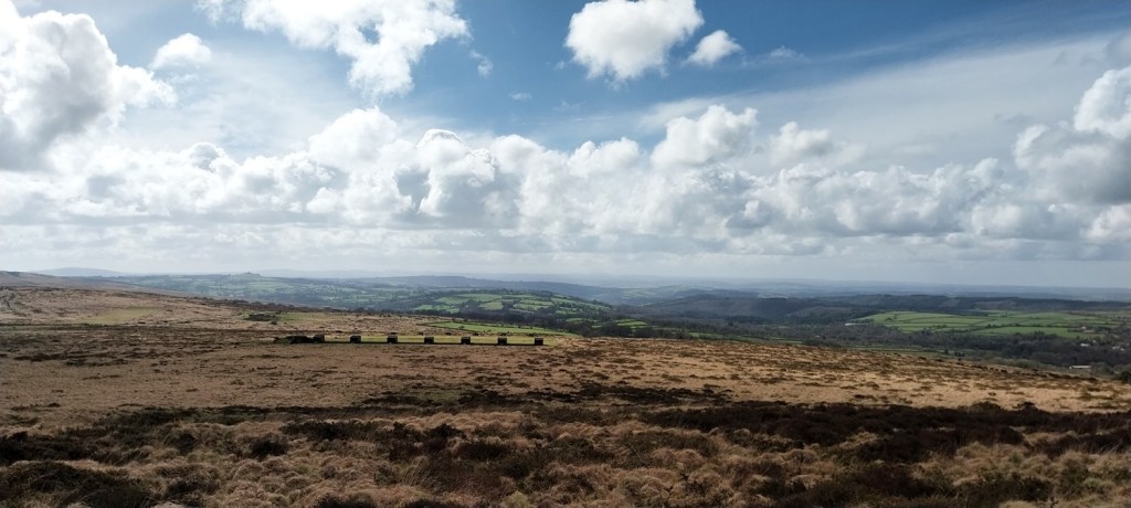 And the plaqueWe sat for a brew at Wheal Betsy, talking to a guy who had been camping out at Little Kneeset, and was bagging the D365 squares. It was nice to talk to a like minded person who spoke about seeing all the parts of Dartmoor. That is Cox Tor back left of this photo.We were handrailing the A386 here, Hare Tor in the distance, centre photoThe milestone (D365 square) is on the other side of the road, beyond is the area around Lydford GorgeThe second milestone is on this side of the road, a small upright piece of granite to mark the miles from place to place. This is one of the entrances to the Willsowrthy Firing Range, as it says on the sign to the leftWe are on the firing range now, the grey bank in the distance is where your target is (Hare Tor is behind that), you are in lane 7 and need to hit the target 500 metres away. Best of luck soldier!To prove the distance, the 500 metre markerAt the business end, this is where the targets sitAnd behind the target bank, you can see the mechanism that would raise the target, the sand bank to the left catches the roundsWe had left the lengthy range and moved to a shorter range with moving targets, they run along a short track back and forth, you shoot from the boxes in the distance, approx 100-150 metres awayLeaving the ranges now and moving up White HillThe clouds look superb from the top of White Hill, the flag pole will fly the red flag when firing is taking placeWhite Hill views towards Gibbet Hill and beyond to CornwallNorth Cornwall, the views from the western side of the moor are superbThe darker Doe Tor in the foreground, Brat Tor to the left and Great Links Tor at the back, both in sunDark moody clouds mix in with the sunshine as I look back to White Hill on our way up Hare TorLinda in front of Hare TorOn Hare Tor now, the cleft of Tavy Cleave can be seen to the left, cutting through the hillside, the high point back left is Great Mis Tor.Blue skies, fluffy clouds and the central Dartmoor basin. Lots of rover heads in this photo, with the area around Fur Tor (and the tor itself) bang in the centre of the photo. You’ve got the Rivers Tavy and West Dart definitely to the right of Fur Tor and the Cowsic will start on the right hand edge of the photo. On the left edge will be the Taw, East Dart and West Okement. Tavy Cleave is cutting across the photo to the right.From Hare Tor, looking beyond Sharp Tor to Great Links TorSelfie on Hare Tor, there was a cold wind up hereRock basin on Hare Tor, even had ripples from the wind in it. Great Mis Tor is the dark tor at the back beyond the gorge of Tavy CleaveGer Tor is down there in the sun, and will be our next stop, a patchwork of fields extends beyond thatLooking back from Ger Tor to Hare TorYou get great views down into Tavy Cleave from up here on Ger TorOn the left of photo are the Tavy Cleave Tors. Fur Tor sticking up at the backGer Tor, with the River Tavy below. Great Mis Tor is away in the distance to the right of that is White Tor and furthest right is Cox Tor.A slight darkening of the clouds ahead as we drop down from Ger Tor and head for Lane End, the ground was pretty much a 50 metre wide running stream down hereLinda shows off the Wheal Friendship Leat, it the distance is White Hill and the Willsworthy RangeAfter Lane End we walked the lanes back towards Zoar, passing these daffs near to Willsworthy.Lynch Tor back left and Bagga Tor is in the centre but tricky to see from here as it blends in with the high ground behind itLast photo looking back to Hare Tor, our high point today. A stunning walk, lovely sunshine and some fine clouds and skies. As always the company was beautiful as well