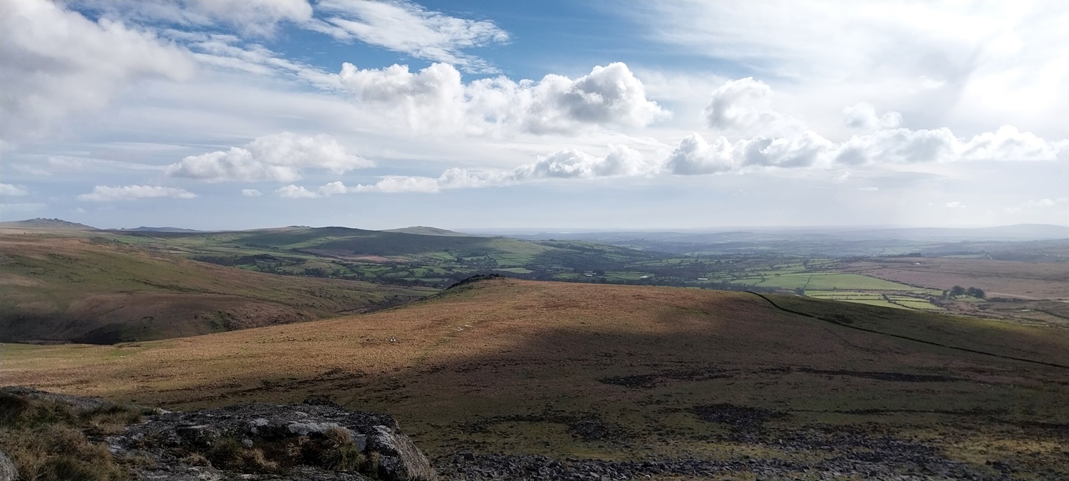 Out of the car and you get this view towards Tavy Cleave and Hare Tor (looking like the the highest point from here). Sunshine dapples the hills around.Big white fluffy clouds above as we look from Master Rock in towards Lynch Tor, with White Tor on the rightWheal Jewell Reservoir looking to Tavy Cleave and Hare Tor, we can now properly see Great Links Tor back left, which is the high point on this side of the moorLooking towards Lynch Tor (back middle) from Wheal Jewell, the dark hill to the left is Standon HillThe Wheal Friendship leat enters Wheal Jewell at this end of the reservoir, again that backdrop and plenty of sunshine aroundWe crossed Kingsett Down to this point which gives a good view along the Tavy Valley towards PlymouthLots of these around todayWheal Betsy on the side of the hill, we would head there next