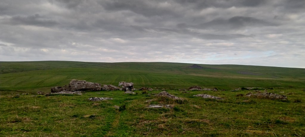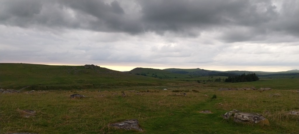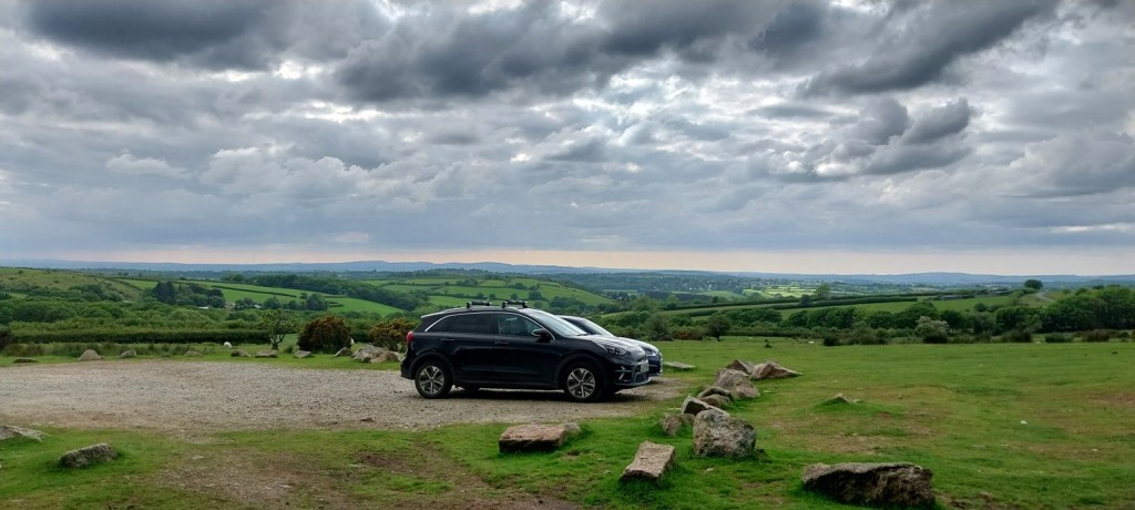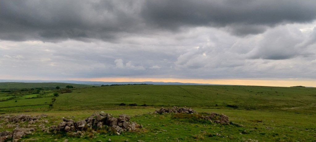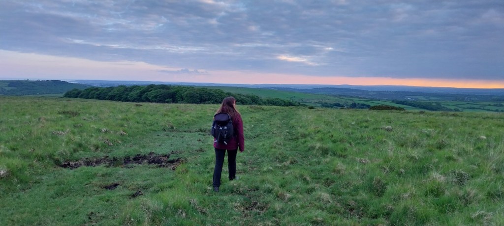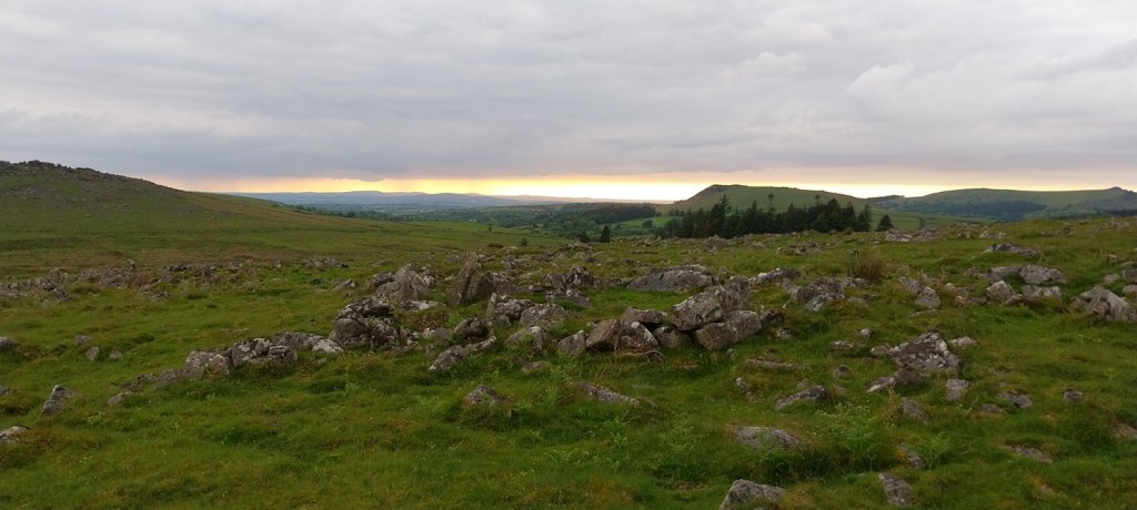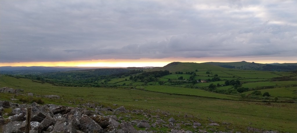 All parked up, Cornwall in the distance, we head out for our evening walk.Brisworthy Plantation on our right here, we would head up and around the trees to the rightAs we turned the corner we saw a Roe Deer bounding away from us. Before disappearing around the plantation it looked back to check on usA short distance away was the stone circle at Brisworthy. Legis Tor is far left and above the tree is Lower Trowlesworthy Tor. The middle distance is Lee MoorOn Legis Tor now, Saddlesborough is the high spot back left. You can see the V middle right of the Plym Valley. Another option for a evening walk if we get the weather.We are heading that way next towards those trees, holding Ditsworthy WarrenA colouring of the skies in the distance from Legis TorWalking the path to Ditsworthy Warren, the River Plym wriggles its way towards Plymouth from up in these partsDitsworthy Warren HouseThe back of the Warren House. Legis Tor in the distance beyond LindaPointy Hen Tor from the WarrenMum and foalEastern Tor or parts of it.The River Plym on the right as we look up to Higher Hartor Tor, with Eylesbarrow back leftNearing Whittenknowles Rocks and looking over to Gutter Tor, with Sheeps Tor behind and Leather Tor/Peek Hill behind thatWhittenknowles RocksWhittenknowles Rocks, not much really. But in the distance it looks to be glowing a bit.Meadow PipitThe orange grows in the distance, Sheeps Tor to the right, pointy Leather Tor further rightGutter TorThe trig point at Gutter Tor is about 50 metres from the tor, Plymouth Sound in the distanceThe trig point is placed and maintained by the Dartmoor search and rescue team in PlymouthOrange glow over Cornwall and there is a gap for the sun to appearBrisworthy Plantation ahead and Linda looking at the glow to our right (and west), just maybe we might see somethingGalloways with the sun glow beyondHere it is, the sun starts to drop below the cloud lineNot quite sure what I did for this photo on the camera, love the layers in the rolling hills and the purple light coming from the sun. Sunset timeBrent Tor and its church silhouetted nicelyThe sun’s glow lights up the trees of the plantationSun and cloudNearly goneNow gone and lovely layers of land to finish, a real treat to have a bit of sunset as we reached that car