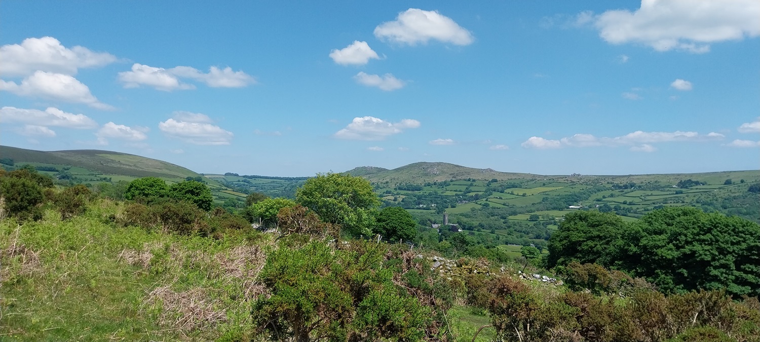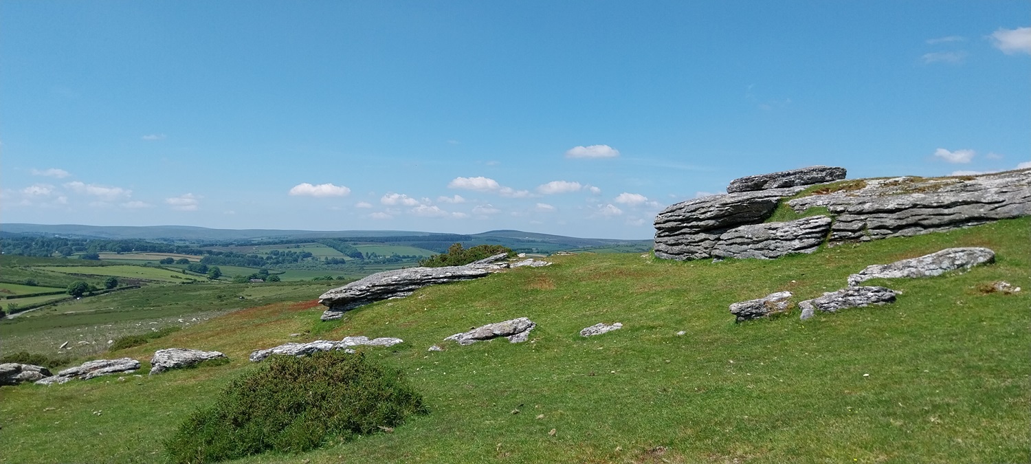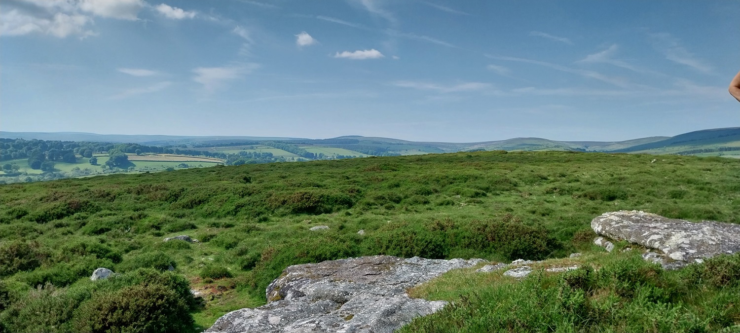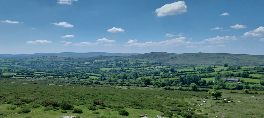Back to Dartmoor after our mammoth coastal walk last time out and an area on the eastern side of the moor, not too far from Widecombe. The walk would pick up a number of Dartmoor 365 squares and was walk number 56 on my second round, this one grabs squares Q16, L14, L16, M14, M15 and M16 , also a couple of tors, hamlets and bridges. First up however is a visit to the Dartmoor 365 square in Hembury Castle, an Iron Age hillfort, followed by a Norman motte and bailey castle. This is an important site, not just for the history but for a butterfly. It is one of a few places in the UK that the High Brown Fritillary lives (others include north Devon and Morecambe Bay area). So we headed there in early June to see if we could spot it, bobbing along the paths through the bracken which criss-cross the hillfort area. We saw quite a few of the High Brown’s and also Common Blue’s, spending a good 30 mins looking around the site. We then moved on for our walk proper, parking up below Wind Tor before setting off towards Higher Dunstone and then looping around and up to Wind Tor. We then followed some lanes to firstly Jordan and then onwards to Little Cator, crossing a couple of bridges in the process. Finally we climbed the short distance to Rowden Tor, with both Rowden Tor and Wind Tor giving very good views to much higher places and along the valleys. All that was left was the short walk back to the car, enjoying the sun as we finished off. The weather throughout had been good, showing the turn in weather we saw in June at times, and we enjoyed getting out in plenty of blue skies.