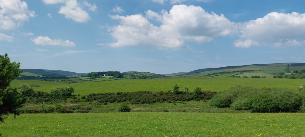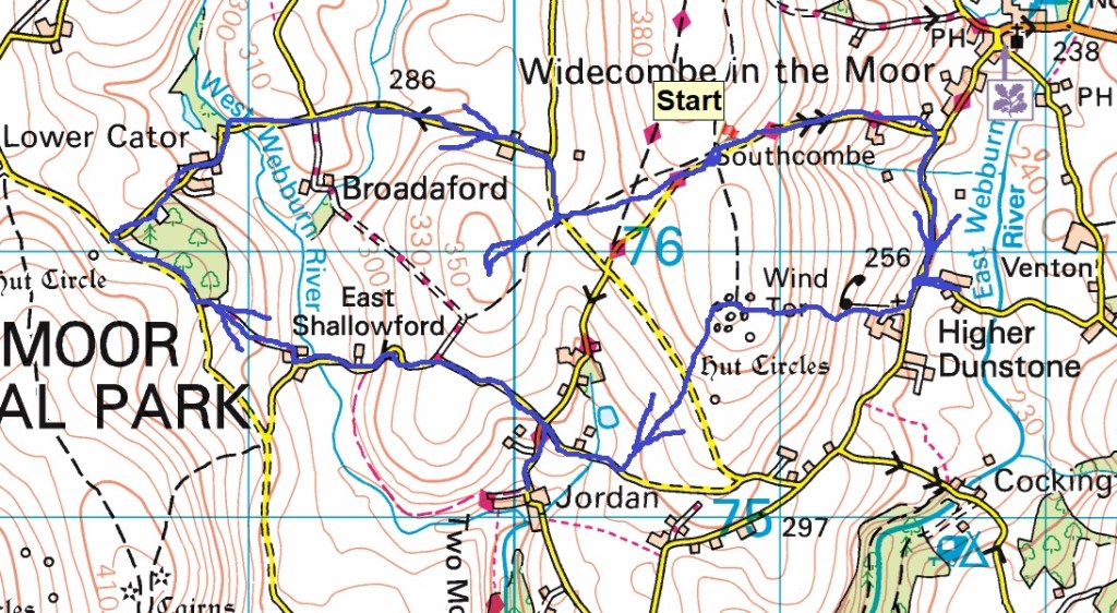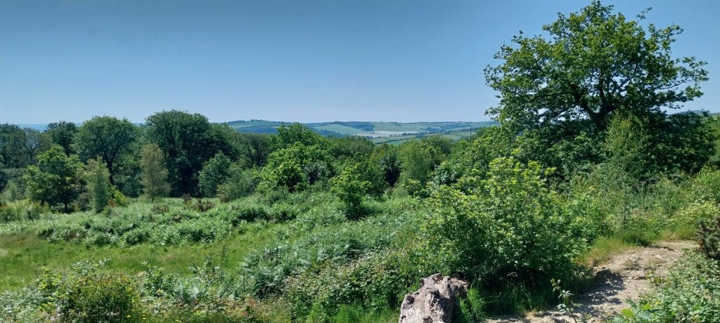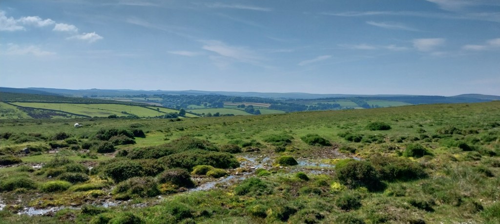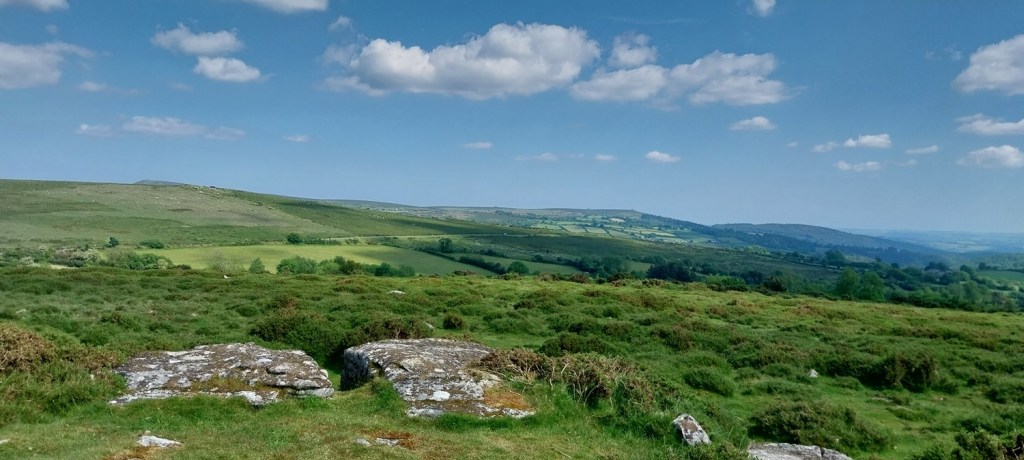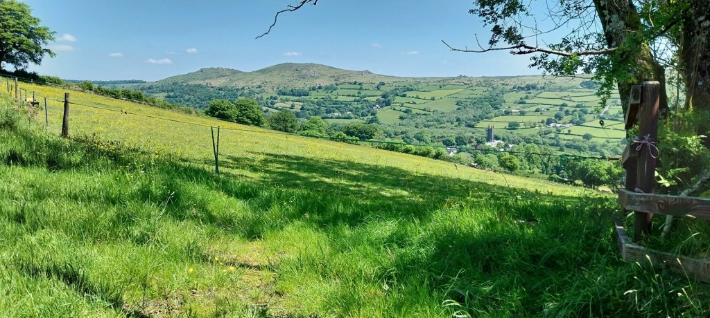 Back to Dartmoor after our mammoth coastal walk last time out and an area on the eastern side of the moor, not too far from Widecombe. The walk would pick up a number of Dartmoor 365 squares and was walk number 56 on my second round, this one grabs squares Q16, L14, L16, M14, M15 and M16 , also a couple of tors, hamlets and bridges. First up however is a visit to the Dartmoor 365 square in Hembury Castle, an Iron Age hillfort, followed by a Norman motte and bailey castle. This is an important site, not just for the history but for a butterfly. It is one of a few places in the UK that the High Brown Fritillary lives (others include north Devon and Morecambe Bay area). So we headed there in early June to see if we could spot it, bobbing along the paths through the bracken which criss-cross the hillfort area. We saw quite a few of the High Brown’s and also Common Blue’s, spending a good 30 mins looking around the site. We then moved on for our walk proper, parking up below Wind Tor before setting off towards Higher Dunstone and then looping around and up to Wind Tor. We then followed some lanes to firstly Jordan and then onwards to Little Cator, crossing a couple of bridges in the process. Finally we climbed the short distance to Rowden Tor, with both Rowden Tor and Wind Tor giving very good views to much higher places and along the valleys. All that was left was the short walk back to the car, enjoying the sun as we finished off. The weather throughout had been good, showing the turn in weather we saw in June at times, and we enjoyed getting out in plenty of blue skies.