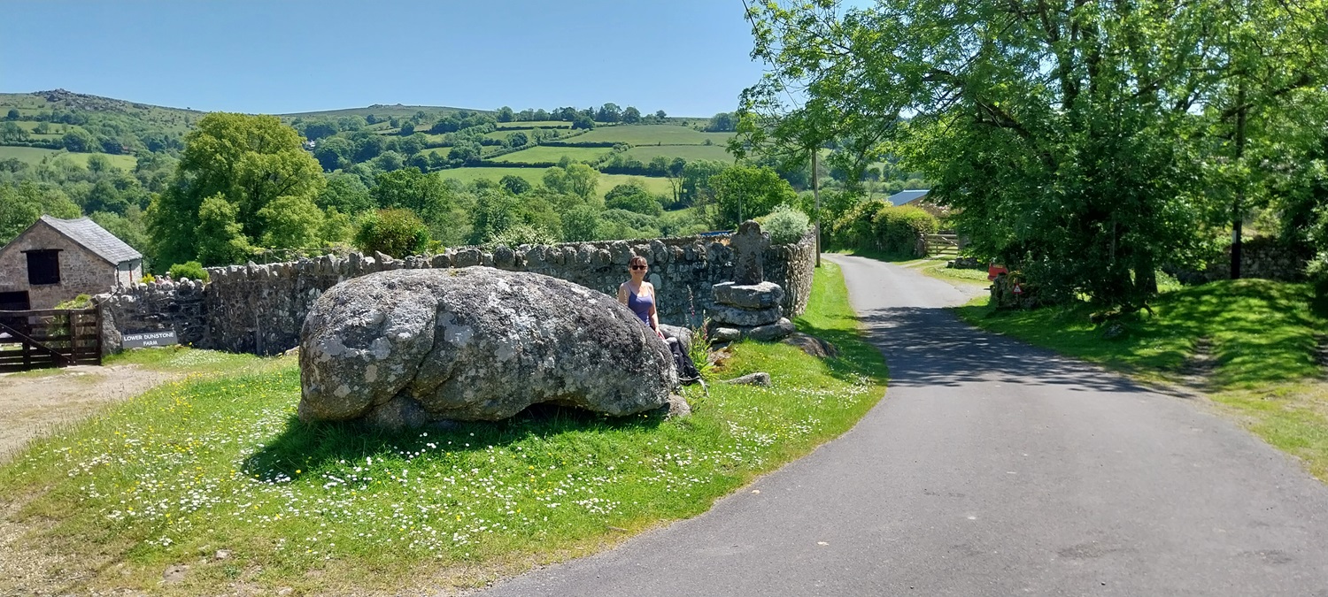 Sign showing the Hill Fort, the real star is the butterfly bottom left of the signBracken getting high even in early June, the mound behind is part of the original motte from the Norman castleEven though the area is part of Hembury Woods there are still views to be hadNot my best photo, but this is a High Brown Fritillary. We saw probably 5 or 6 of these in this visitCommon Blue butterflies were also very abundantOn to the walk, this is the car park, cloudless skies above and that’s Hameldown stretching away beyond the carsChinkwell Tor and Honeybag Tor are in view to the westAnd the other way is Corndon Tor with Ryders Hill at the backThis stone marks the Two Crosses in the Turf, a place marking the boundaries of Jordan, Blackslade, Dunstone and Widecombe. Previously the two crosses shown on the stone would have been cut into the turf by lengthsmen, however in 2008 this stone was placed in the same location.Lovely framed view of Chinkwell Tor and Honeybag TorSouthcombe Cross the first of the Dartmoor squares on this main walk, we would turn right here and follow the lane to Higher DunstoneIn the village here, with the Dun Stone and the cross either side of Linda. The Dun Stone was used by the land owner for tenants to leave their rent money in a hole in the stone, the hole would be filled with vinegar to clean the coins of any diseases.Dun Stone and the cross, in the distance are the tors of Tunhill Rocks and Pil TorHigher Dunstone churchAs we climb to Wind Tor the views open up again to Chinkwell Tor with Hameldown on the leftPart of Wind Tor and the main bulk of Hameldown behindCorndon Tor from Wind Tor, Ryders Hill at the back, we would next be heading down to the left to the lanes to JordanOne last look at Wind TorSpeckled WoodSquirrel on a nearby tree in the hamlet of JordanCorndon Tor as we walk the lane in and out of JordanThe dog did indeed come running towards us and the command does indeed workDrywell CrossEast Shallowford Farm, another Dartmoor squareA Beautiful DemoiselleWest Webburn Bridge, the Shallowford versionWe took at right at this sign to leave the lanes briefly and follow a gravel pathIt was however overgrown a bit and full of fliesNext we went downhill along this lane towards Little Cator, we were now heading back in a westerly direction so Hameldown became the backdrop again.Lower Cator Bridge, this is the old clapper bridge, behind me is the road bridge. This is a D365 square Silver Ground Carpet MothLooking into Challacombe, Hameldown on the rightRowden Tor looking across to Corndon TorCovered in lots of gorse its a bit of fun getting to this one, following the narrow tracksWind Tor on the left and beyond that is Buckland BeaconLast photo looking into the centre of Dartmoor. A lovely walk in some fantastic weather but the real treat of the day was the High Brown Fritillary and good to read recently that they are doing well in North Devon so maybe an excuse to visit the coastal path in that area and have a visit.