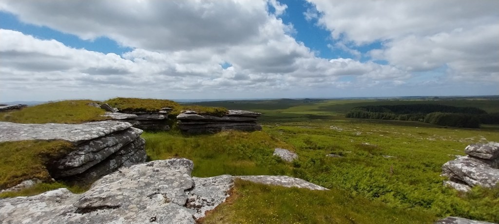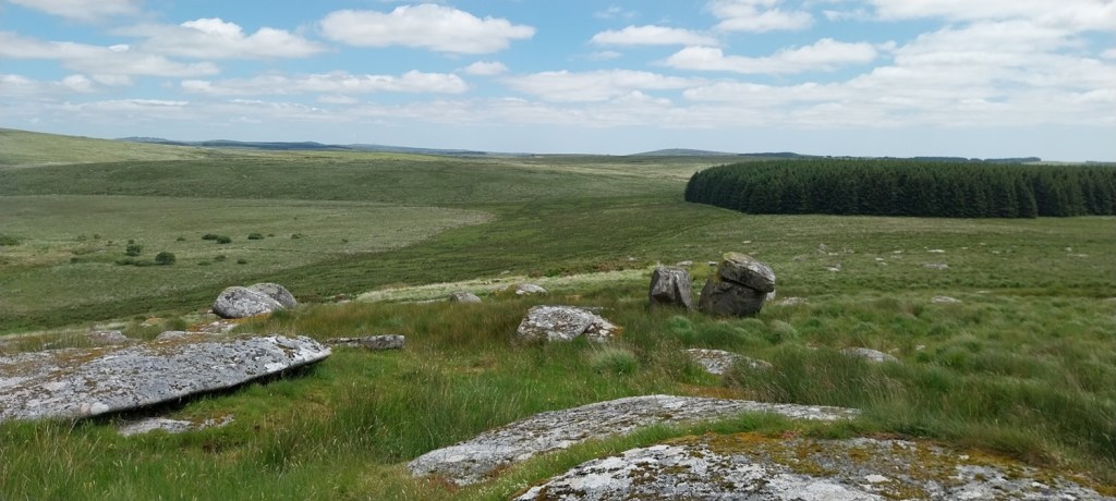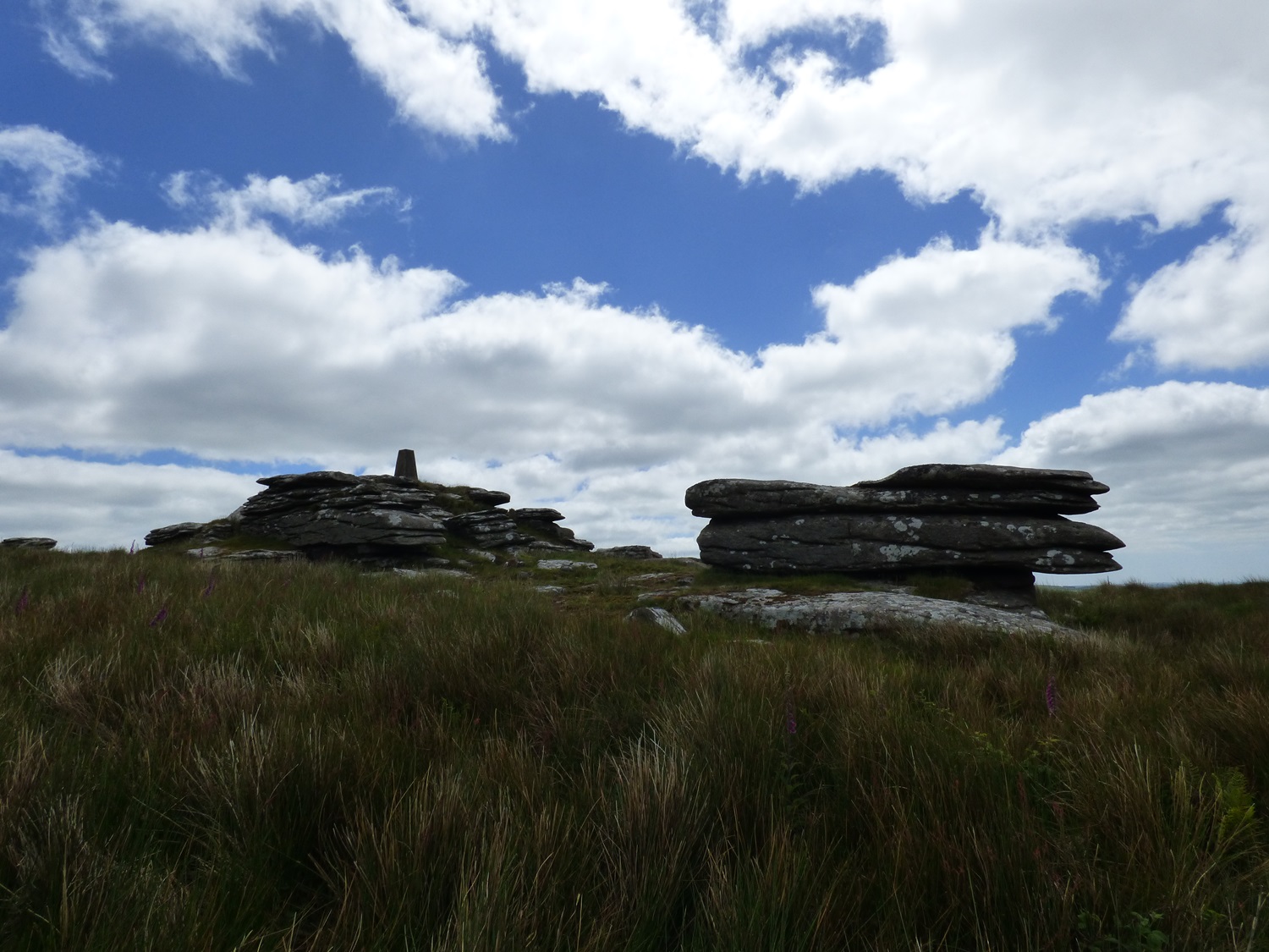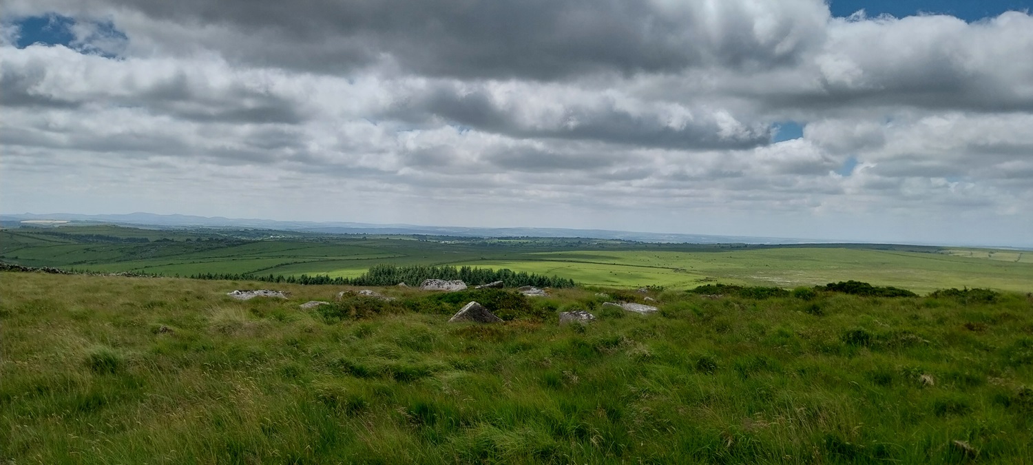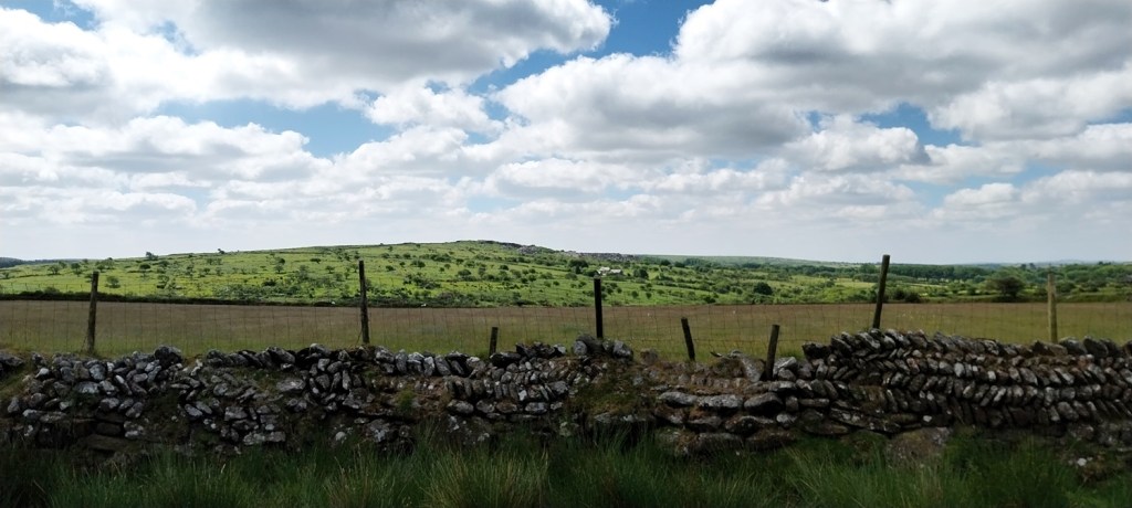By the car on Emblance Downs and that is Carbilly Tor, my first target. I’ll need to head right from here and pick up some fields and lanes to that tor.Hawk’s Tor on the right and Carkees Tor to the leftLooking for a gate into the fields ahead hereNearer to Carbilly Tor now and on the right lane to get me towards Bradford BridgeBradford BridgeThe beautifully clear De Lank River, a lovely spot for a picnicThere was a gate below Carbilly Tor which said it was the access point for the tor, so I went in with the plan to head out that way.Carbilly Tor has clearly been quarried a fair bit in the past, plenty of spoil from the quarries is piled up. I’d seen a gate down there on the right so headed for that as that was the way I wanted to go next. Hawk’s Tor is at the backThis wasn’t the gate I’d jumped, mine was left of this but it shows the difficulty around these parts to traverse around without deviating from your original plans.A stone circle on the way to Hawk’s Tor, I didn’t get any closer as there were two calves lay in the centre and the parents weren’t far offThere’s a path down to the left here and up through that walled section to the left of the square field in the centre, that takes you to Hawk’s Tor up there.Hawk’s Tor and its trig pointViews to Brown Willy to the right and Rough Tor left, the high point on Bodmin Moor. There is a tree line away in the distance, this side of Brown Willy. I’ll be heading for that gap in the trees later.Looking towards Kilmar Tor from Hawk’s TorWalking to Carkees Tor involves crossing a fence but there is a gate, took me about 5 minutes to find it as it was down lower than the original path directionCarkees Tor looking back to Hawk’s TorRough Tor at the back left, Brown Willy to the right of that. The gap in the trees I’m going for next is on the right middle now. I will next be heading for the shaded area on the hill opposite first (Scribble Downs) and then off to the right, this is due to the large stream crossing between me and Scribble Down and the path heads that way to cross it.Hawk’s Tor back left, Carkees Tor centre and I’m now on the path having crossed the streamMeadow Browns were the popular butterfly on this day out. By this point I’d caught my trousers on a fence and ripped opened up a nice flap of material allowing a breeze to cool my legs. Got to love these Bodmin fencesAfter crossing a second stream and climbing to the gap in the trees, the path vanished. There was then a few hundred metres of thick tall grass to wade through to get to Butter’s Tor, it wasn’t worth the effort.The few pieces of granite on Butter’s TorAt the back of Butter’s Tor is its one redeeming feature, this view to Brown Willy and Rough Tor on the left. The path crossing the photo leads to farms on my right here and also from another farm between Rough Tor and Brown Willy, the owner of said farm does not like walkers at all and likes to put lots of signs up to tell us to keep out.Garrow Tor is next upRuined farm buildings as I start the climb to Garrow Tor, first though I need to cross the De Lank River on a bridgeLooking out to Hawk’s Tor from the bridgeAnd the bridge itself with Brown Willy behindGarrow Tor, it was at this point that my phone pinged to say my son wanted a pickup in 45 mins, given that I was at least that from the car, and then a 30-40 minute drive away was a little troubling. I told him to walk slower.Garrow Tor to Rough Tor and Brown WillyGarrow Tor and those white fluffy clouds above, Looking south here in the direction of Kilmar TorNext I head to the trees down there, through those, across a small clapper bridge and up to King Arthur’s Hall, they love a bit of King Arthur in Cornwall.King Arthur’s HallI was speeding back and took one last look at the high points of Cornwall before turning and heading downhill towards the carMy car is in sight with Carbilly Tor at the back. So another Bodmin Moor walk, but these never seem to be satisfying places to go. You can have a perfectly good short walk here, but if you want any length to the walk, then you will need to be able to change your plans as you go, as you never know when a fence or 3 will be in the way.