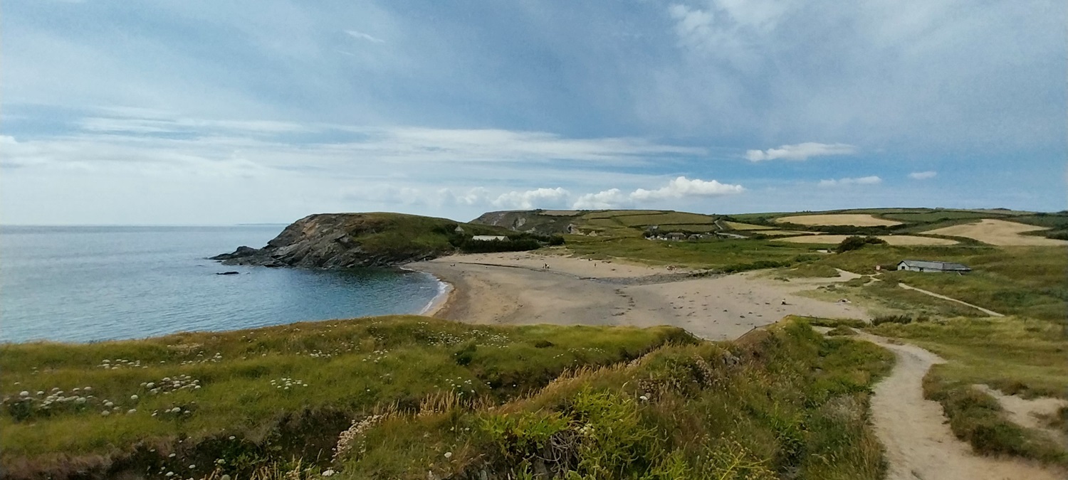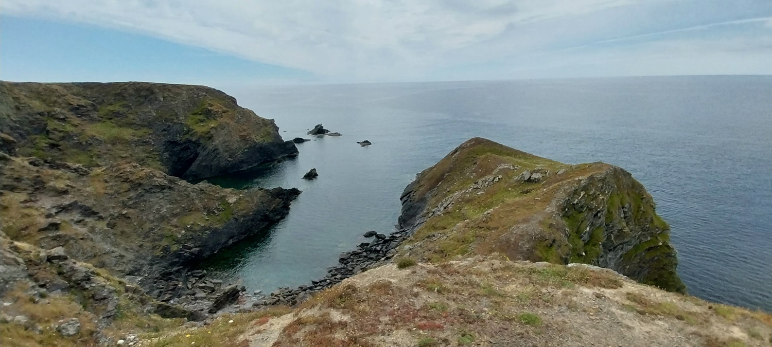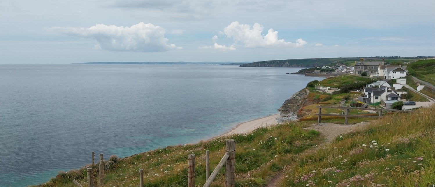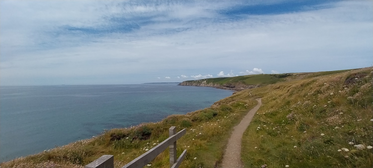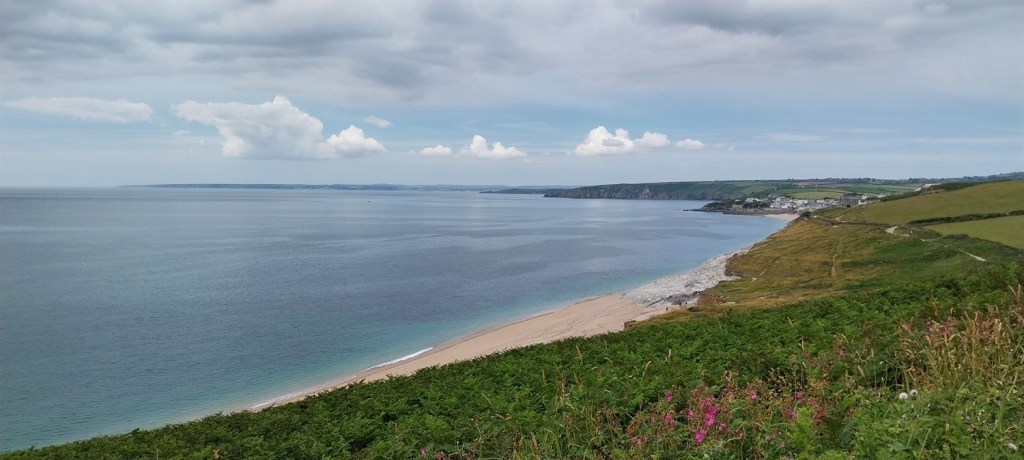 A floating ship, Mount’s Bay was like a millpond as we walked to Mullion.