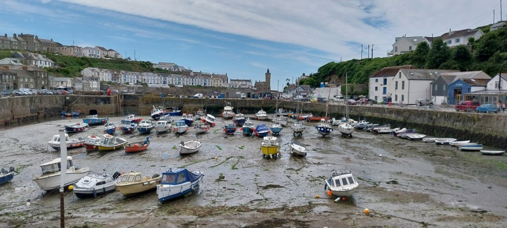 Portleven harbour, we headed for pasties and cold drinks as it was lunchtime and we felt we needed to keep water levels topped up on this hot day.