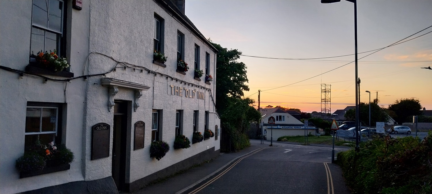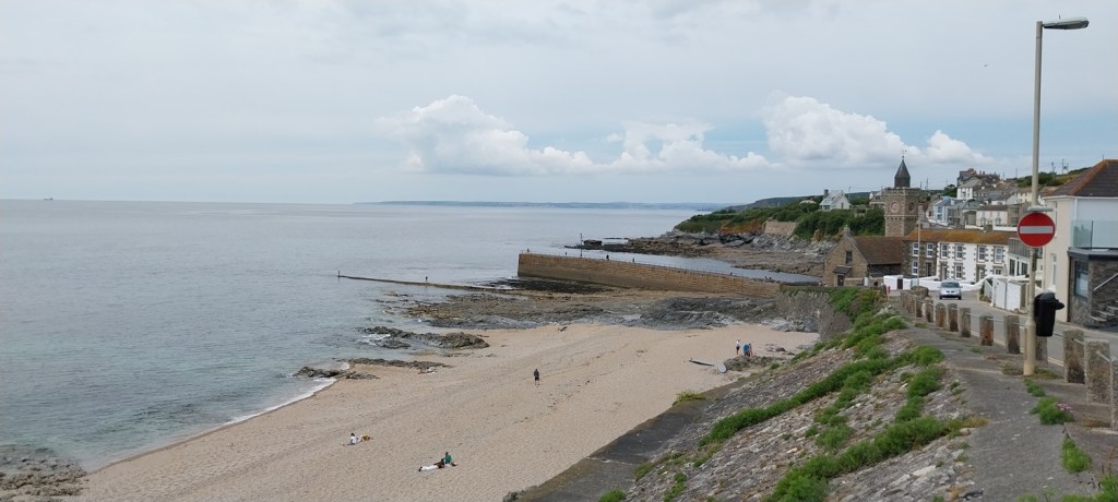 So, day 2 of our walk from Penzance to Lizard Point and we leave our little overnight cottage in Rinsey Croft, heading for Mullion and specifically the Old Inn, where we had a night booked. The distance would be exactly the same as the day before, but with no driving before the walk it felt an easier day. Also, like day 1, there was very little rise and fall in the path, and certainly no huge drops followed by 100 metre climbs. We left Rinsey Croft in cloudy conditions, but turning at the NT car park at the bottom of the road we saw blue sky ahead, in fact there was a clear line drawn between the cloud and the sunshine and we had just a short walk to hit the rays. First though we hit two tin mins and the engine houses associated with this trade, they looked superb against the blue seas, perched precariously of the cliff edges. Next up was Porthleven, were we picked up some food and stopped off in a cafe for cold drinks and pasties and admired the harbour. Next we walked over a slight hill and dropped down to the Loe Bar, a shorter version of Cogden Beach in Dorset, where we toiled through stony sandy ground for a mile or so. We were thankful that in 10 minutes we were across the Bar and heading for Gunwalloe and then the gorgeous Church Cove. The Church of the Storms at Church Cove stands hidden from the waves by a bank, its tower strangely separate from the main part of the church, the lovely beach curves around the cove inviting you in for a swim. Next up came Poldhu Cove and the Marconi Centre where Marconi sent the first radio transmitted wireless signal to St John’s in Canada on 12th December 1901. We were then heading inland from Poldhu Cove to Mullion to our pub accommodation, with England vs Denmark playing that evening, we watched that in our room before eating. There was a lovely sunset that evening but we were a little too far inland to see the best of it, so we rested well ready for the next day and Lizard Point