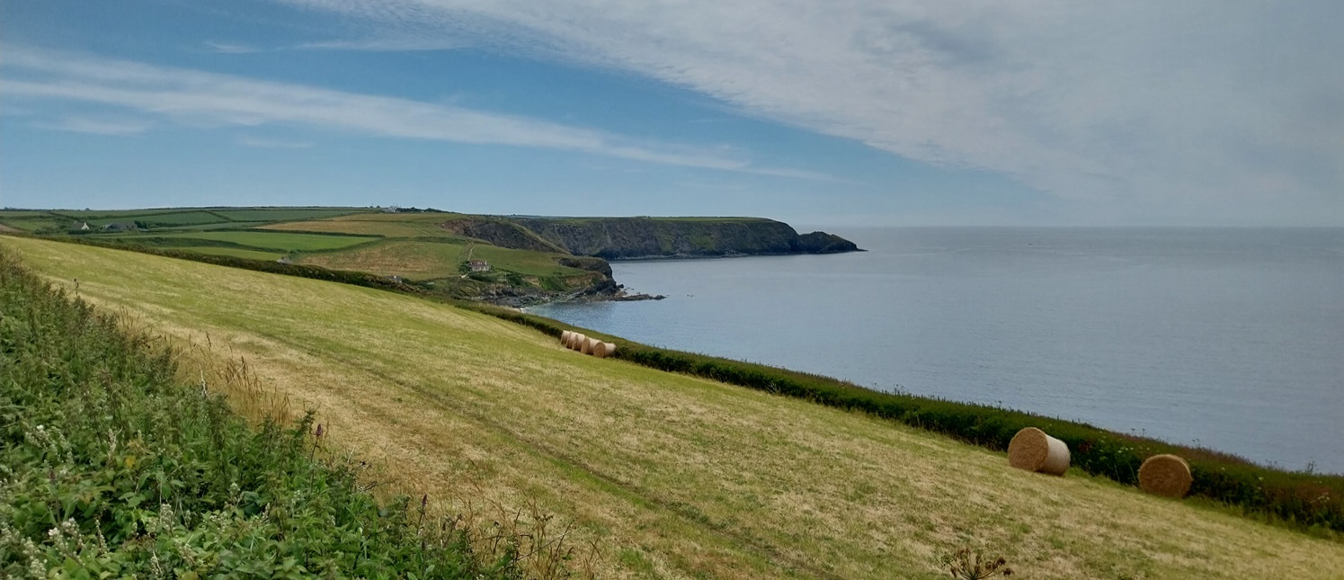 A nice part of the path with the fields tilted towards the sea, the silage had been collected nicely into the normal bales and then rolled off down the hill