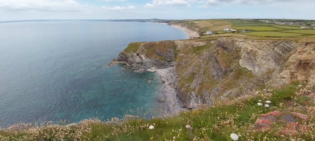 This below is called Halzephron Cove as we climb gently to the cliffs of the same name