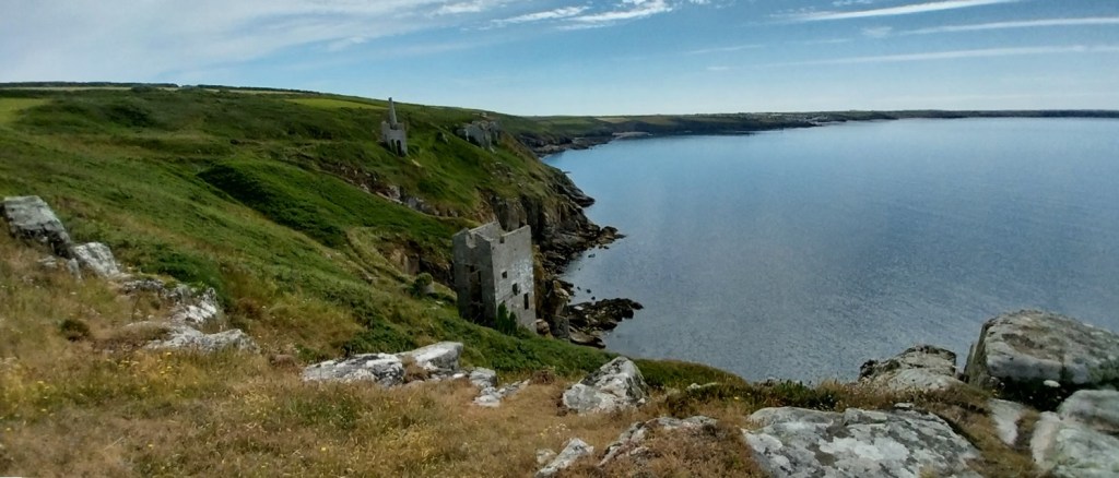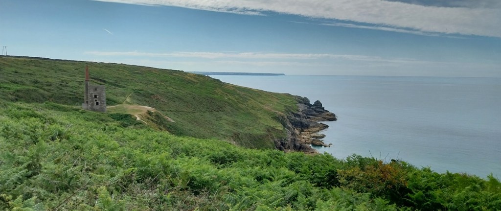 Looking back to Trewavas Point and Wheal Trewavas, perched on the cliffs