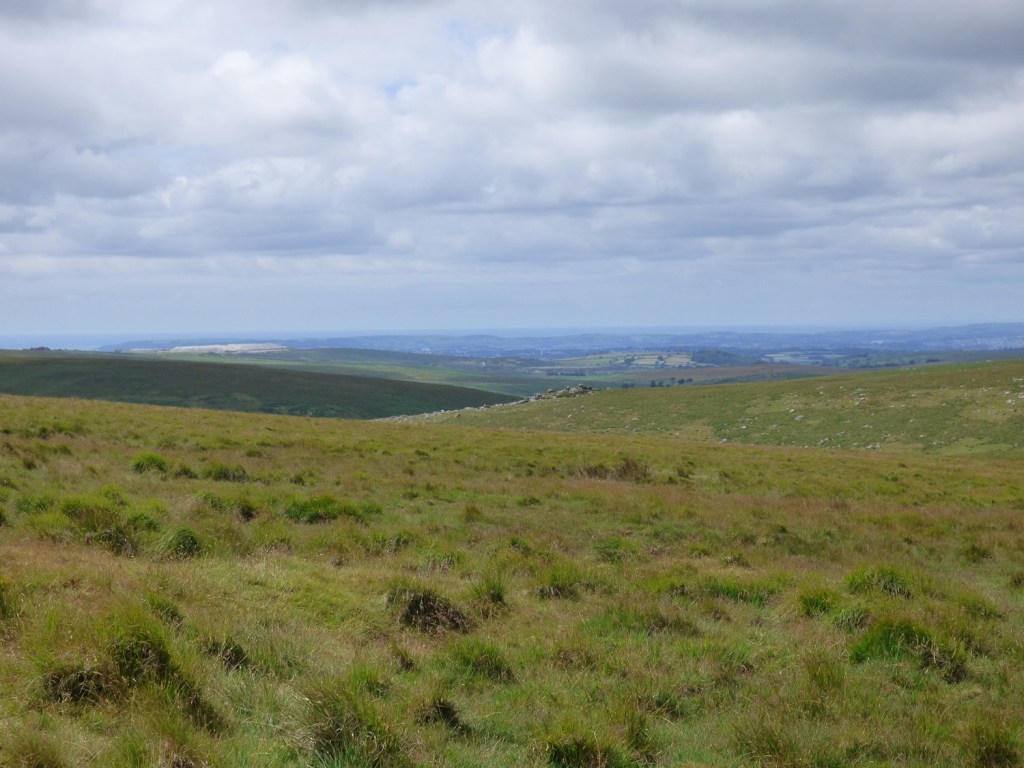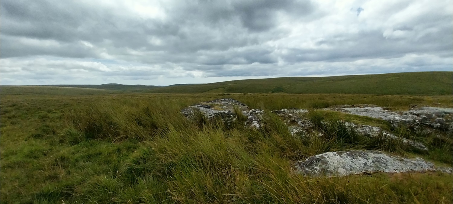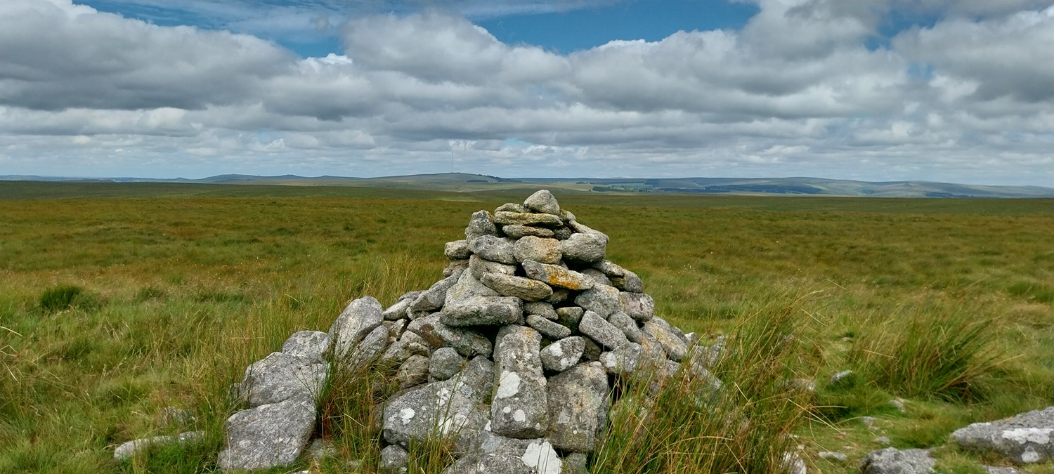 The little bridge over the Devonport Leat, Whiteworks is just by the tree on the left and we have parked in a small parking spot behind me. Ter Hill is in the distance across Foxtor MiresFollowing the Devonport Leat we found this sheep leapWhiteworks across Foxtor Mires, Nun’s Cross Farm is behind me hereNun’s Cross Farm is up there and the leat enters a tunnel here, cut to maintain the steady gradient, it comes out again about 400 metres past the farm Northmore Cross, this tiny memorial was placed here in 1980 by Bill Northmore in honour of the Dartmoor landscape and for giving him a lifetime of happiness. I don’t publish the location of this cross as it has been broken and removed in the past so to protect it I try not to show where it sits.On Crane Hill and the featureless land begins. Princetown and its mast in the distance, at times this helps with navigation in these partsCrane Hill looking down to Plym Head, the source of the River PlymPlym Ford, the river narrows upstream of the ford and is easier to crossLittle Hartor Tor sliding down the hill as I zoom in a little on the views to Plymouth SoundGreat Gnats Head and the Dartmoor ponies are having a snooze in the sunshine. Lee Moor at the backGreat Gnats HeadAnd again with views towards the Princetown mastAt Duck’s Pool is this memorial to William Crossing, the famous Dartmoor writer. To get here, especially at the moment will involve a dreadfully boggy trudge across tussocky soggy ground with no paths.The letterbox at Duck’s PoolLinda borrowing my glasses to read the letterbox, the yellow rubber ducks used to be under the rock behind, but have been removed More boggy trudging brings us to Black Rocks, its the rocks on the eastern side that hold Philpott’s Cave and are named by William Crossing as the outcrop. There is another small outcrop downstream on the western bank which are named, I think by Eric Hemery as the site of Black RocksPhilpott’s Cave and Black Rocks, you can see the western outcrop over thereA short distance away is Wollake Tor the ground had improved to this point. Stingers Hill is at the backLooking back towards Duck’s Pool and Black Rocks from Wollake TorBack into the tussocks and soft ground as we head to Green Hill. The River Erme is running away from me here with Standon Hill at the back (the darkest looking one). To the left of that is Three BarrowsGreen Hill cairn, Redlake is the black pointy lump over thereAt the back of Green Hill is just miles and miles of this, it was very wet in here the little yellow bog asphodel plants showing the conditions in the areaThere was an awful lot of thisPrincetown, North Hessary Tor and Great Mis Tor back rightBog cotton joins the bog asphodel as we reach the post near Cater’s BeamJust tough terrain all around hereWhealham Bottom Cross as we headed back across towards Nun’s Cross Farm, finally we’d found some paths again, our first since Great Gnats HeadWalking the leat back to the carFrom a distance I thought this was a heron, as we approached and it hadn’t moved we realised it was a stick!!😂Final photo looking across Foxtor Mires, Ter Hill up on the right, Whiteworks in the trees to the left. Hameldown is away at the back. So the end of a boggy trudge which had tested us, and resulted in a different route being taken as the terrain took its toll. The ground isn’t hilly at all but the ground underfoot saps the energy and makes for a challenging walk