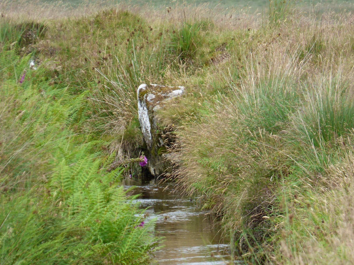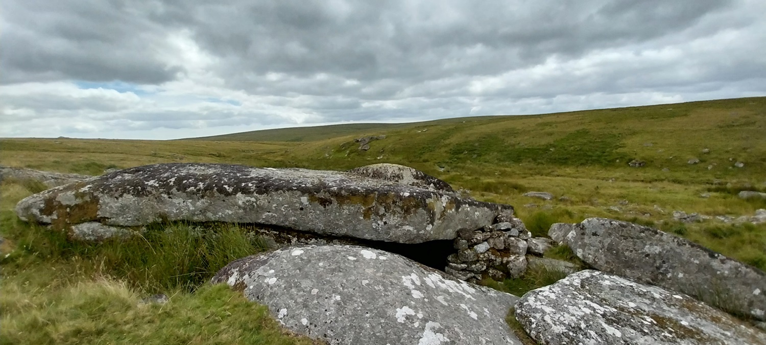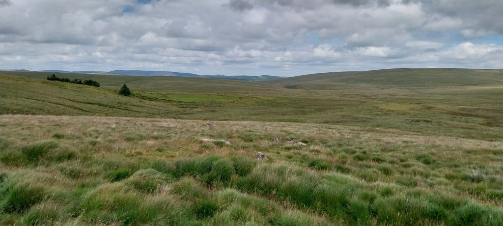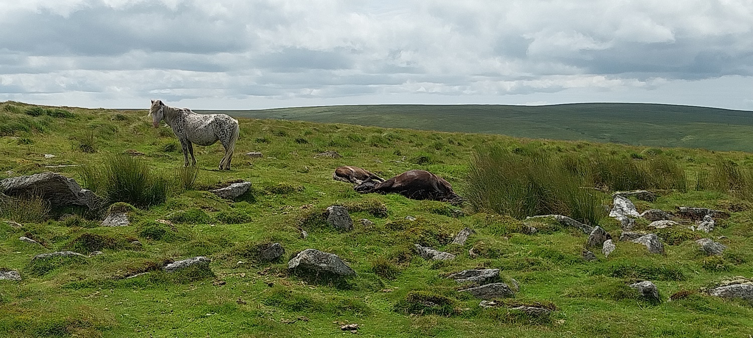 The little bridge over the Devonport Leat, Whiteworks is just by the tree on the left and we have parked in a small parking spot behind me. Ter Hill is in the distance across Foxtor MiresFollowing the Devonport Leat we found this sheep leapWhiteworks across Foxtor Mires, Nun’s Cross Farm is behind me hereNun’s Cross Farm is up there and the leat enters a tunnel here, cut to maintain the steady gradient, it comes out again about 400 metres past the farm Northmore Cross, this tiny memorial was placed here in 1980 by Bill Northmore in honour of the Dartmoor landscape and for giving him a lifetime of happiness. I don’t publish the location of this cross as it has been broken and removed in the past so to protect it I try not to show where it sits.On Crane Hill and the featureless land begins. Princetown and its mast in the distance, at times this helps with navigation in these partsCrane Hill looking down to Plym Head, the source of the River PlymPlym Ford, the river narrows upstream of the ford and is easier to crossLittle Hartor Tor sliding down the hill as I zoom in a little on the views to Plymouth SoundGreat Gnats Head and the Dartmoor ponies are having a snooze in the sunshine. Lee Moor at the backGreat Gnats HeadAnd again with views towards the Princetown mastAt Duck’s Pool is this memorial to William Crossing, the famous Dartmoor writer. To get here, especially at the moment will involve a dreadfully boggy trudge across tussocky soggy ground with no paths.The letterbox at Duck’s PoolLinda borrowing my glasses to read the letterbox, the yellow rubber ducks used to be under the rock behind, but have been removed More boggy trudging brings us to Black Rocks, its the rocks on the eastern side that hold Philpott’s Cave and are named by William Crossing as the outcrop. There is another small outcrop downstream on the western bank which are named, I think by Eric Hemery as the site of Black RocksPhilpott’s Cave and Black Rocks, you can see the western outcrop over thereA short distance away is Wollake Tor the ground had improved to this point. Stingers Hill is at the backLooking back towards Duck’s Pool and Black Rocks from Wollake TorBack into the tussocks and soft ground as we head to Green Hill. The River Erme is running away from me here with Standon Hill at the back (the darkest looking one). To the left of that is Three BarrowsGreen Hill cairn, Redlake is the black pointy lump over thereAt the back of Green Hill is just miles and miles of this, it was very wet in here the little yellow bog asphodel plants showing the conditions in the areaThere was an awful lot of thisPrincetown, North Hessary Tor and Great Mis Tor back rightBog cotton joins the bog asphodel as we reach the post near Cater’s BeamJust tough terrain all around hereWhealham Bottom Cross as we headed back across towards Nun’s Cross Farm, finally we’d found some paths again, our first since Great Gnats HeadWalking the leat back to the carFrom a distance I thought this was a heron, as we approached and it hadn’t moved we realised it was a stick!!😂Final photo looking across Foxtor Mires, Ter Hill up on the right, Whiteworks in the trees to the left. Hameldown is away at the back. So the end of a boggy trudge which had tested us, and resulted in a different route being taken as the terrain took its toll. The ground isn’t hilly at all but the ground underfoot saps the energy and makes for a challenging walk