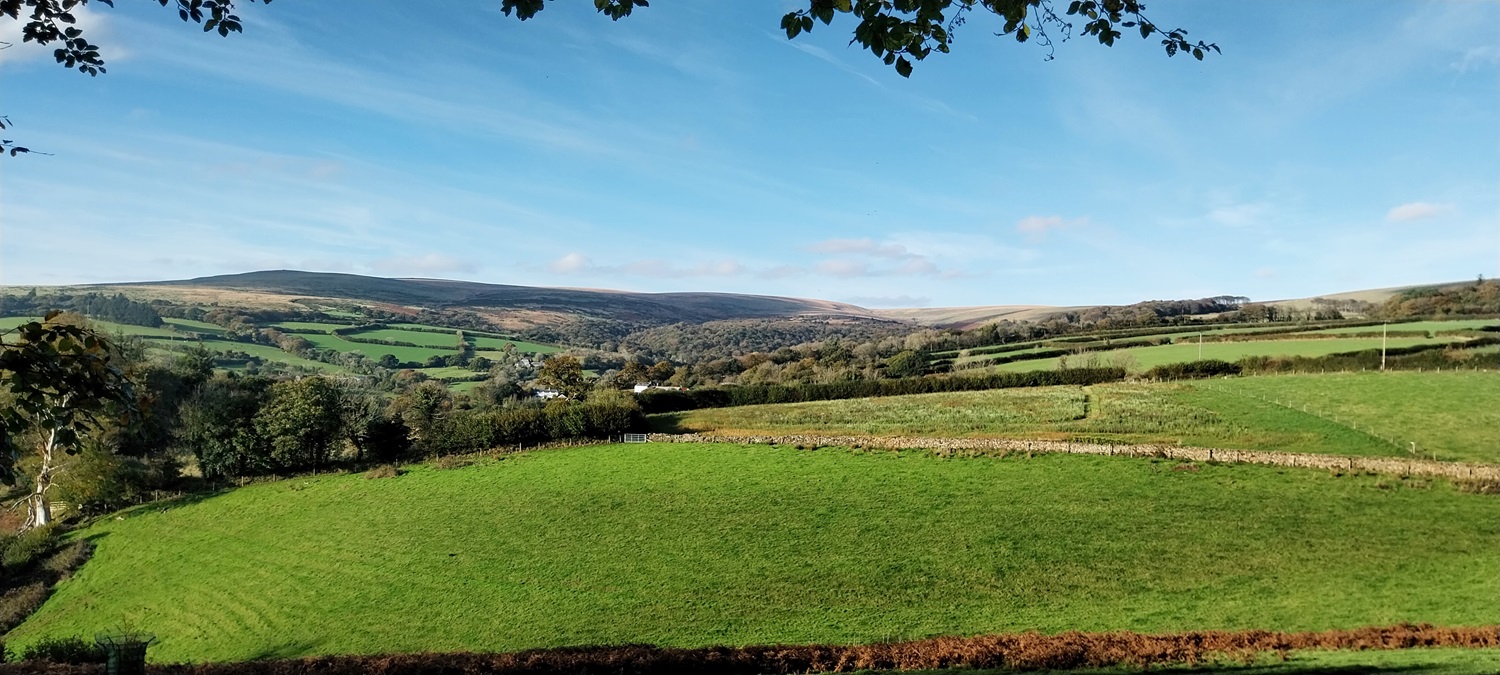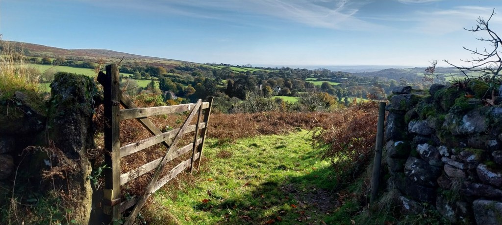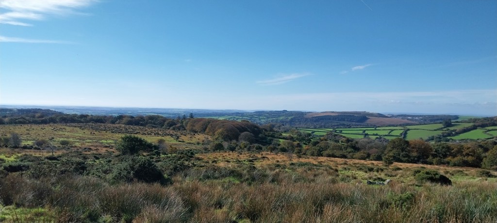 Stunning views to Lee Moor as we pickup the lane to Moor Cross, hoping to cut off towards Cornwood