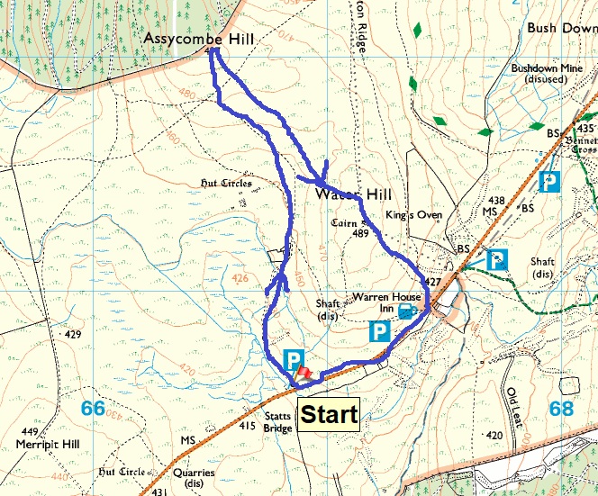 Route – Assycombe Hill – Water Hill – Warren House Inn – Car park – East Dart Inn