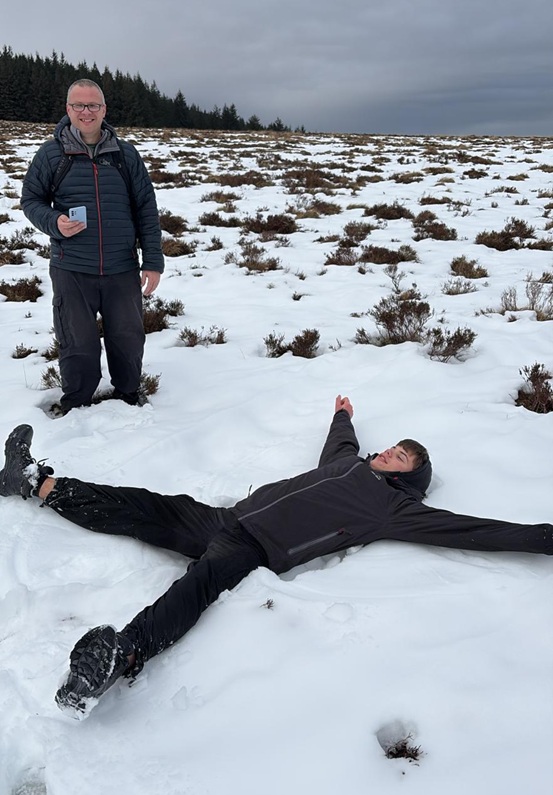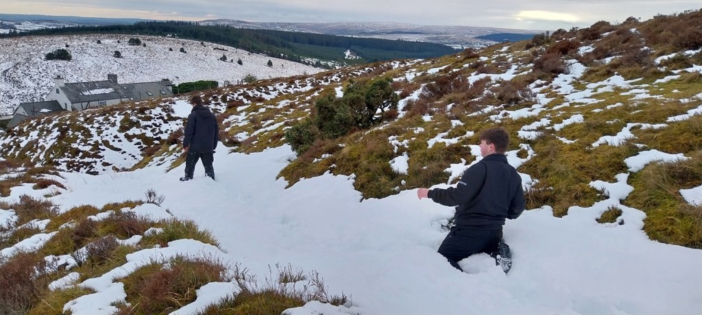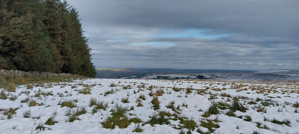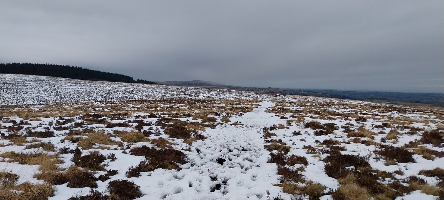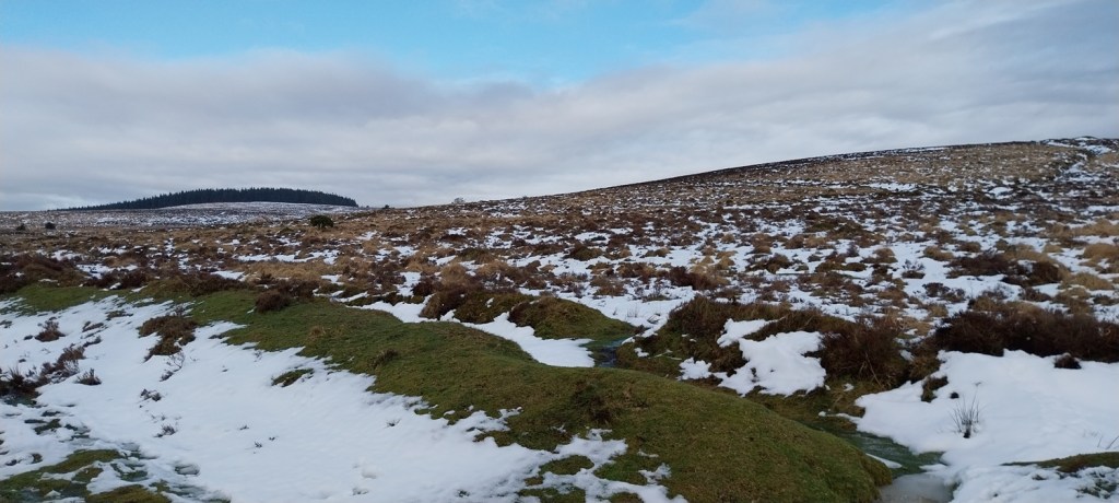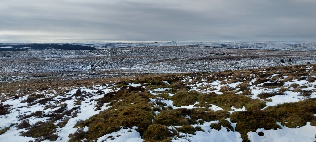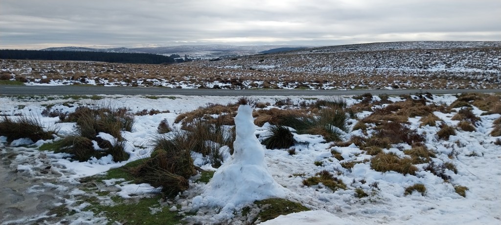So the country was covered in snow and all the talk was of the weather, how cold it was and that “back in my day it was always like this in winter”! Plymouth got nothing, zero, nowt but Dartmoor got a decent covering of the white stuff, on a Tuesday and Wednesday, which is of no use to those who work all week. Thankfully it hung around a little and by Friday when temperatures had started to rise, it was still cold in the centre of the moor so it stayed. Myself and the boys decided to go and have a look, my youngest on checking the webcams said that Princetown was ok, but Postbridge looked like a good spot. We first headed for Holming Beam, with a plan to head over to Beardown Tor, however on turning to head to Holming Beam, red flags were flying despite it not being an advertised firing day. Irritated, I turned and headed for Postbridge and out the other side, for a walk above the Warren House Inn to Assycombe Hill. It wouldn’t be a long walk, but we knew there would be less people, and enough snow for the boys to throw snowballs at me for the majority of the walk. We set off with snow knee deep in places, and the need to break trail at some spots as well as we left the road behind. Before long we were on Assycombe Hill, with a coffee and doughnut in hand enjoying the mainly white and grey vistas in front of us. To the east all was green as the snow had melted completed, with a similar picture back towards Princetown as the snow was melting quickly. We headed over to Water Hill to extend the walk slightly before walking past a busy Warren House Inn. We thought about a drink in there but with 8 people waiting to be served at the bar, we decided to head to the better East Dart Inn instead in Postbridge on our drive back, where a fine toastie and hot drink was had by all. A lovely little walk and nice to see a bit of snow on the moor again.