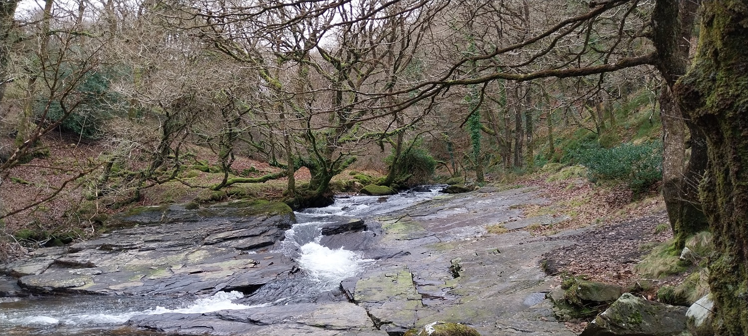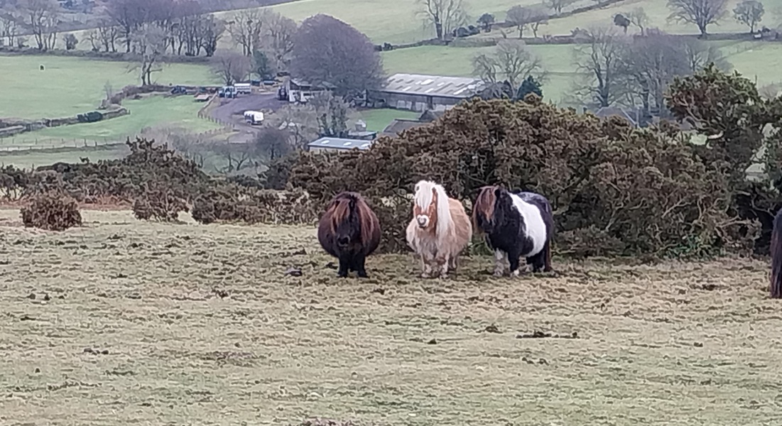 So we had decided on a visit to the north moor and a quieter corner of a much visited area. Sandwiched between the Okehampton Camp/Yes Tor area and the Belstone Tor ridge the East Okement River winds its way down from Okement Hill between these two areas of higher ground. As it nears Winter Tor the valley deepens and the river cascades a little more over the rocks. It then passes through woodland, with East Bowden Wood and Halstock Wood around the river banks, before it leaves the moor passing under the A30 and Fatherford Viaduct. This walk would cover both sides of the river, picking up hills/tors (5) and Dartmoor 365 squares (4) along the way, with less people than can be found on the Belstone ridge or around Rowtor/Yes Tor areas. That said there are a few spots that are pretty popular, especially around Nine Maidens and Cullever Steps but the walk through the woods and up to Cleave Tor was nice and quiet. The walk starts from a small car park near to the Okehampton Camp, heading immediately over East Hill, past the trig point, surrounded by dozens of Shetland ponies. The Lower Halstock Farm is a breeding centre for these gorgeous little animals. Next we reached Ashbury Tor, which sits on the edge of the woodland, with the odd outcrop poking through the ground and more exposed rocks below in the trees. We then dropped through the woods to Fatherford Viaduct and the A30 above us, turning here to follow the river upstream to Chapel Ford. Chapel Ford is a lovely spot on a warm summers day, but today we pressed on and climbed gently to Cleave Tor for some lunch. The sun briefly made an appearance as we ate our sandwiches and enjoyed the view to Scarey Tor along the East Okement valley. Next we started out in the direction of Scarey Tor, with a diversion to Nine Maidens on the way. We checked the time and decided an ascent of Winter Tor was possible before we crossed Cullever Steps. All that was left was to pass Halstock Farms and across the side of East Hill and back to the car. Another lovely part of the moor which showcases an alternative side from the normal yellowy grass and granite.