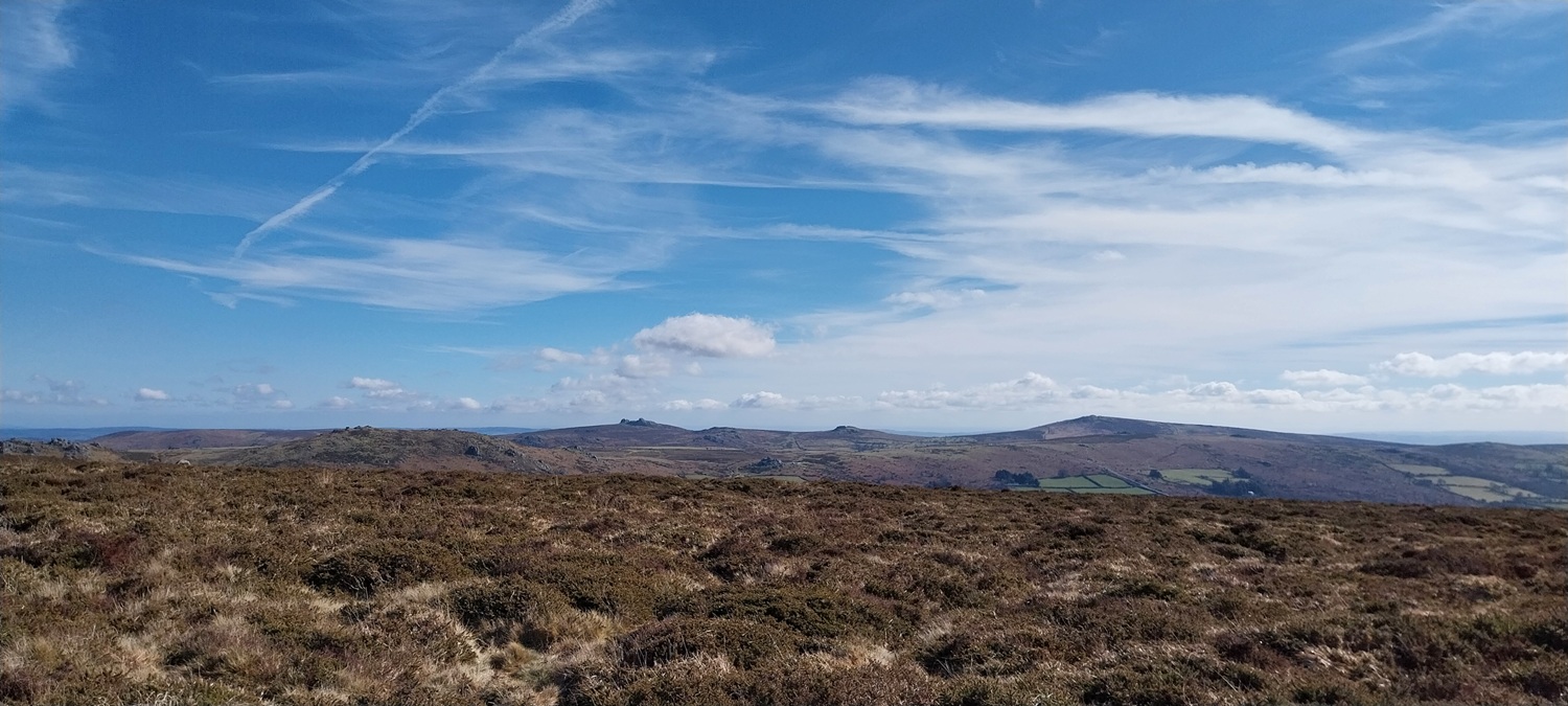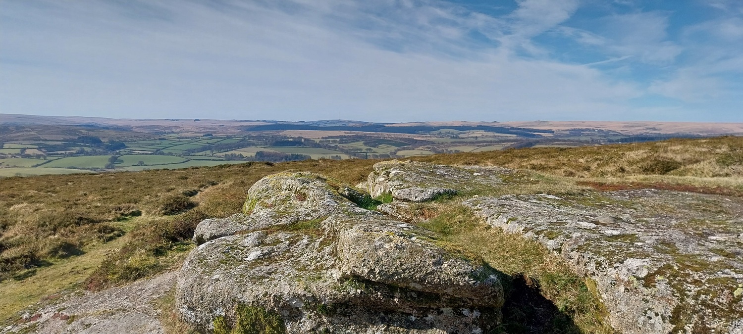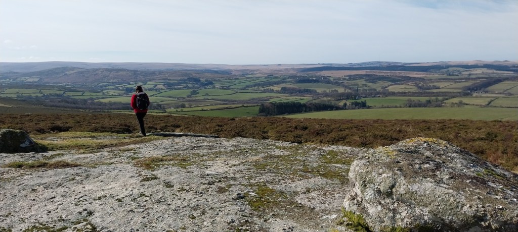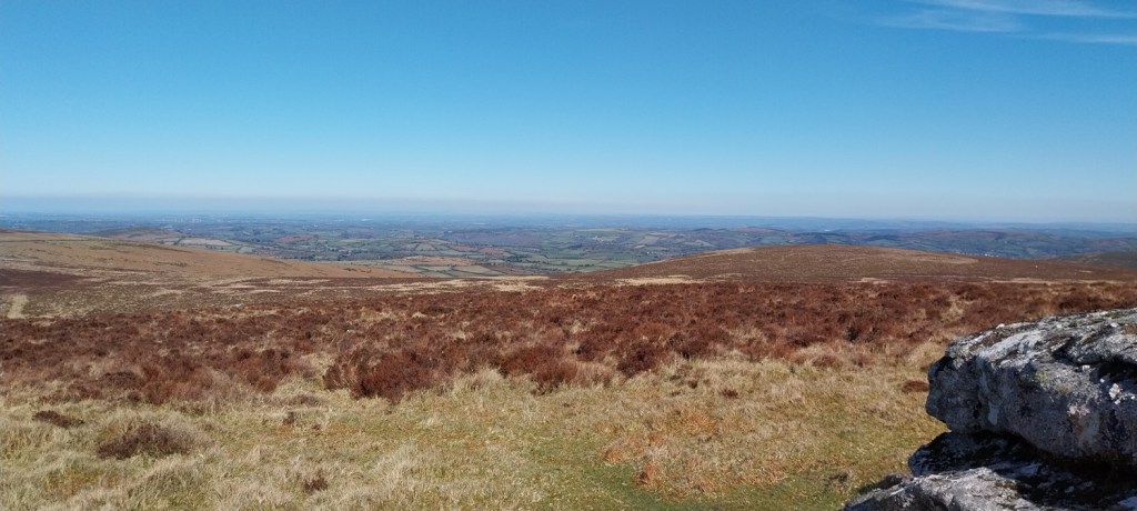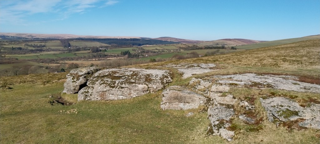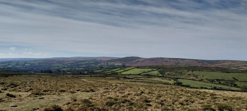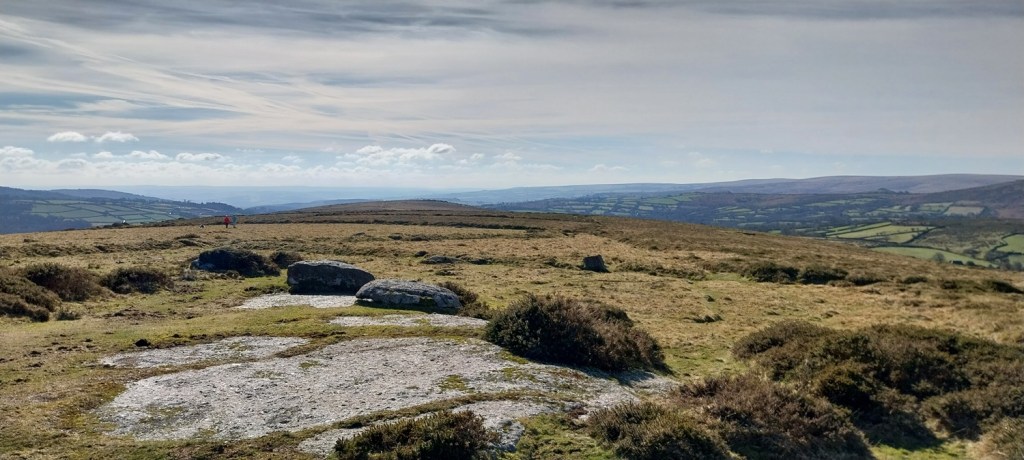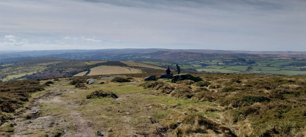 A settles spell of weather had meant sunshine, and a fair bit of it. Not that it was warm, far from it, but the easterly winds usually means good things for us in the South West of England, as the eastern side sees more of the cloud. We probably saw two weeks of dry sunny weather, before it broke briefly, which was a real bonus as February turned to March. So where to walk, lots of opportunities to head a little higher as the daylight lengthens beyond 6pm and the ground dries a little. The plan was to head for the area around Chinkwell Tor, but the good weather had drawn out the crowds, even at 10.30am. So we continued through Widecombe and up the other side, for a traverse of Hameldown, returning along the Challacombe valley. The walk starts off with a gentle climb, passing three tors, which really aren’t much, other than a decent spot for a brew as you head for Hameldown Beacon. Once past this spot you are treated to a wide plateau of very easy level walking, all the way to Hameldown Tor. Next you drop down to the Bronze Age gem of Grimspound, before turning left and back on yourself, heading along the road passing through Challacombe. About halfway back we turned right and headed up to Blacka Tor, which sits on open access land but I’m never sure which way off you should go other than returning the way you came. We didn’t do that and ended up on the lane between Hatchwell Farm and Soussons Forest, quickly rejoining the road heading to Langworthy Farm and then our car. In this weather its a superb walk and Hameldown always delivers with the views in good weather.