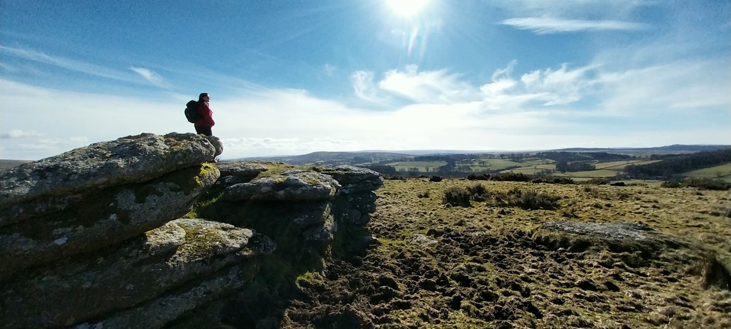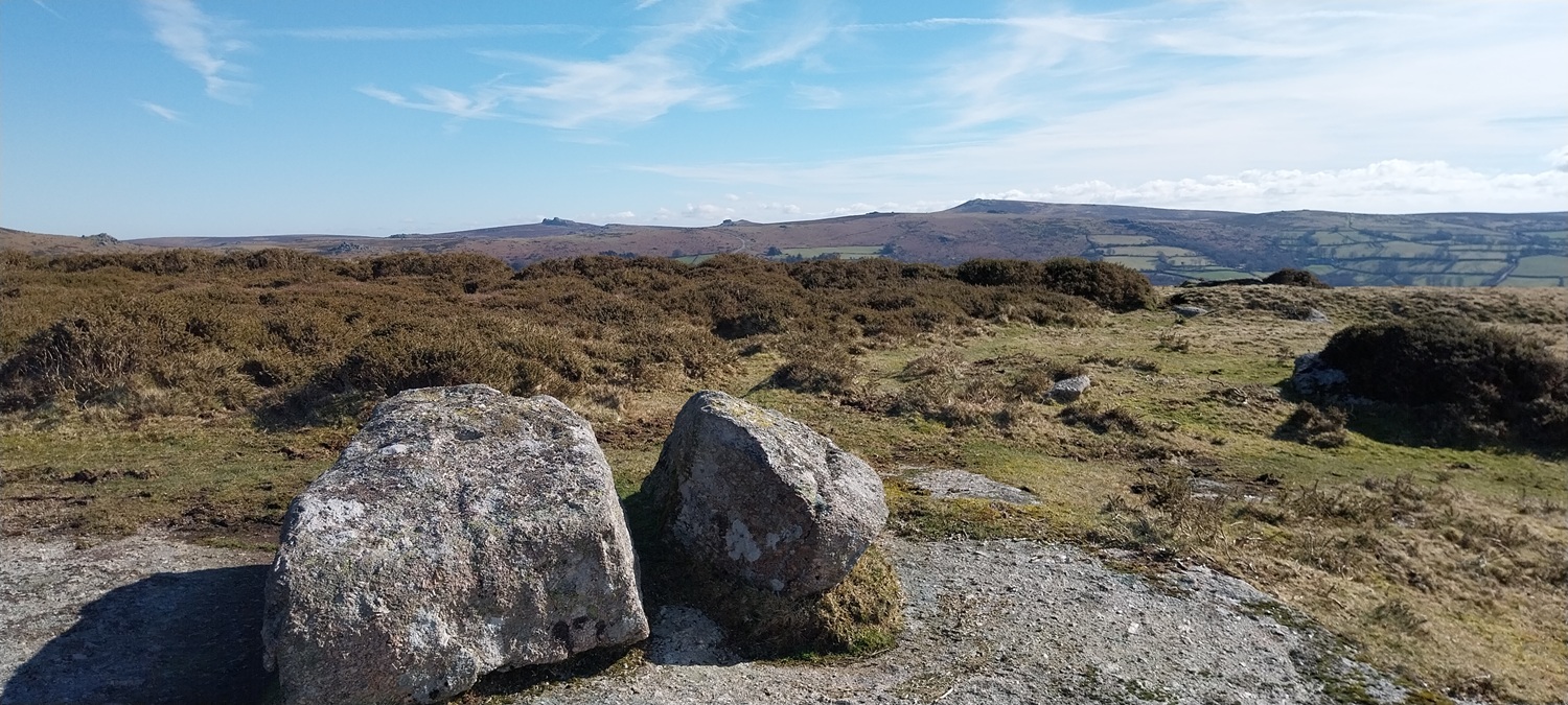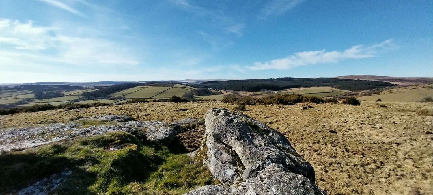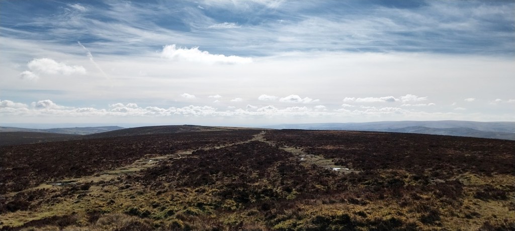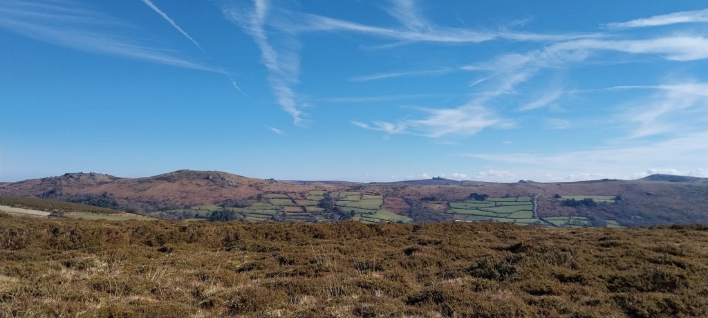 A settles spell of weather had meant sunshine, and a fair bit of it. Not that it was warm, far from it, but the easterly winds usually means good things for us in the South West of England, as the eastern side sees more of the cloud. We probably saw two weeks of dry sunny weather, before it broke briefly, which was a real bonus as February turned to March. So where to walk, lots of opportunities to head a little higher as the daylight lengthens beyond 6pm and the ground dries a little. The plan was to head for the area around Chinkwell Tor, but the good weather had drawn out the crowds, even at 10.30am. So we continued through Widecombe and up the other side, for a traverse of Hameldown, returning along the Challacombe valley. The walk starts off with a gentle climb, passing three tors, which really aren’t much, other than a decent spot for a brew as you head for Hameldown Beacon. Once past this spot you are treated to a wide plateau of very easy level walking, all the way to Hameldown Tor. Next you drop down to the Bronze Age gem of Grimspound, before turning left and back on yourself, heading along the road passing through Challacombe. About halfway back we turned right and headed up to Blacka Tor, which sits on open access land but I’m never sure which way off you should go other than returning the way you came. We didn’t do that and ended up on the lane between Hatchwell Farm and Soussons Forest, quickly rejoining the road heading to Langworthy Farm and then our car. In this weather its a superb walk and Hameldown always delivers with the views in good weather.
