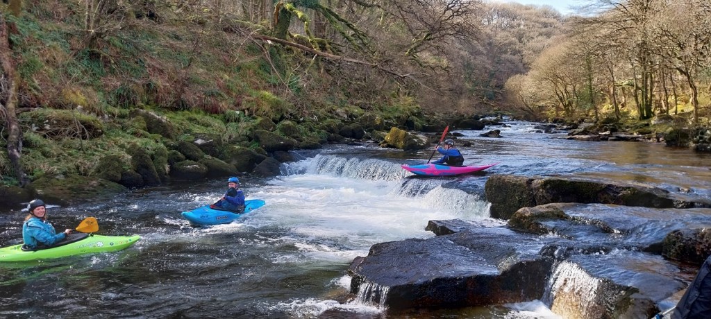 A stunning little waterfall on the Dart, we could see kayakers in the distance, so chose to wait for them.