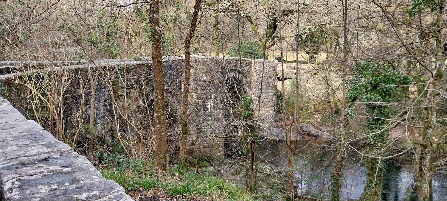 The clapper is this side of the main road bridge, parts of the clapper have been washed away in 1820 and again in 1888. The road bridge is from 1792.