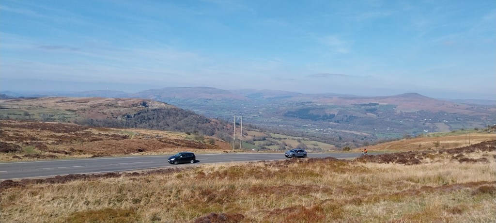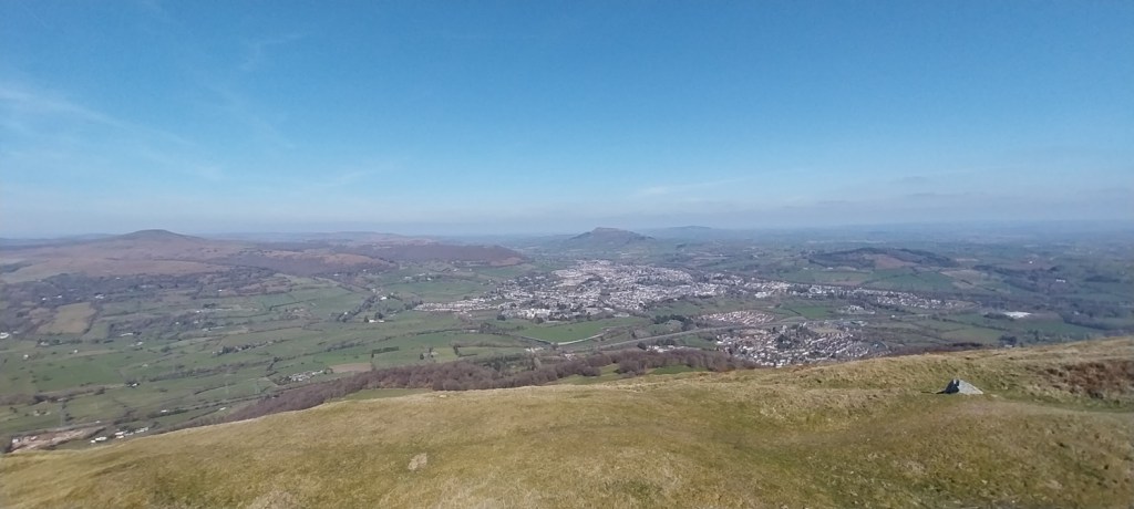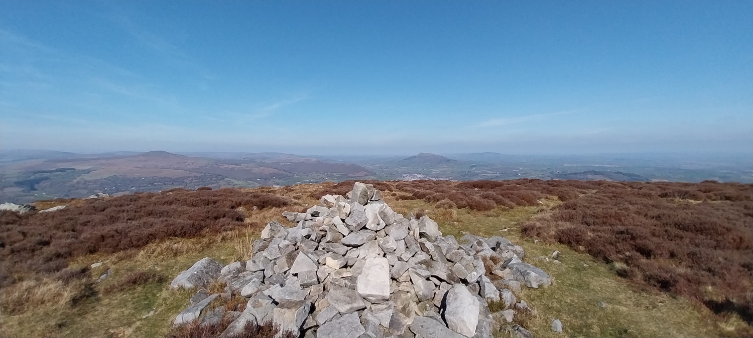 We arrived in sunshine and pretty warm it was too. We decided to have a bite to eat before setting off, so with the car parked below we had a sit here and enjoyed our sarnies.Keeper’s Pool is the starting spot, you follow the path around to the left and enjoy views to Sugar Loaf straight aheadThat’s the B4246 below which runs between Blaenavon and Llanfoist, we also get our first glimpse down to the River Usk valley, which splits to become the Heads of the Valley around to the leftGilwern Hill is over there beyond some mine workings, you can also head that way to extend this walk if you fancy it.We were very happy though with the terraced path, and we were busy taking off layers as it was pretty warmThere is a split off left from the terraced path, that path heads to LlanfoistAs you reach the northern end, views down to Abergavenny greet you. It was time for another coffee break whilst we looked across to Sugar Loaf (on the left hand edge), we would be up there later in the week with Andy.We took a bee line straight for this upright mast/post thinking it would have the cairn next to it. But after heather bashing a bit we realised the main path to the cairn was left of here.The cairn we were looking for at the northern edgeIts not too far to reach the summit and the trig pointLooking west, the distance views were a little hazy but walking in warm weather in March isn’t to be sniffed at, so I’m not complainingLooking back at the summit moundTurning around we are heading for those masts over therePlenty to see up here and I reckon the butterflies would be fairly common up in this areaWe reached the masts fairly quickly and turned to follow this path back to the car, this path runs parallel to the road so is easy to find.Back at the car and the pond, a lovely walk, lovely weather, lovely views, lovely long sit and coffee, altogether it was lovely 😊