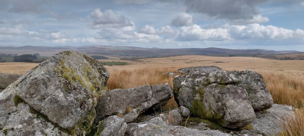 As if to show that the world keeps turning even when you’d love it to stop for a bit, we spotted this moth on our wall, which was there for most of the day. I though initially that it was an Early Grey, but I’ve been reliably informed that its a Knot Grass moth and the two white marks in the centre give it awaySo we parked up at an empty Whiteworks car park, cloud was building overhead but there were still plenty of blue sky bits. Fox Tor Mire to the right, famous as inspiration for Arthur Conan Doyle and his book Hound of the Baskervilles where it was named Grimpen Mire.Devonport Leat, we would return along its banks, but for now we followed the tarmac road to WhiteworksWhiteworks, previously part of the tin mining industry and there is plenty of evidence of that behind it. Now its an outdoor centre.Looking back at Whiteworks, tin mining area up to the rightOur route ahead, the River Strane is in the dip and requires a bit of a jump to get across but nothing too bad when its dry like today, if its been very wet it can be impassable. Royal Hill and the path leading up on to it, Strane Tor itself is across the river and about 50 metres to the left towards that dark area left of photoCrossing the River StraneStrane Tor looking back at Whiteworks, Peat Cot is the hill on the rightLovely fluffy clouds above catch the sunlight as we look across Fox tor Mire to Ter Hill and Skir HillIn the far distance is the area west of Widecombe in the Moor, with Hameldown far left and Chinkwell and Honeybag Tors in the centre, the dip a bit nearer is the River Swincombe as it flows out of Fox Tor Mire and the reservoir of that nameRoyal Hill terrain. You need to be careful not to follow the main path to Swincombe Bridge if you are heading, like we did, for the summit rocks on Royal Hill. Branch off left and take a compass direction on a north westerly point to find it. Thomas Tyrwhitt is the man responsible for naming this hill, he is also the man who setup the Dartmoor prison. Tyrwhitt dedicated his Tor Royal estate to his patron the Prince of Wales – hence the name Royal Hill.Royal Hill and those views to Higher White TorViews to Hameldown also from up here, it was time to tuck ourselves in out of the wind and have some lunchFound himDropping down from Royal Hill to the main track of the Dartmoor WayDartmoor Way, this is the High Moor Link which splits the path in half if you don’t wish to do the whole loop around the outside.Before we hit the Tor Royal Farm, we turned 90degrees to head towards Peat Cot and the Devonport Leat. Dark clouds overhead but no rain fell.Looking back along the path, which has been laid to gravel for half of its length, much better than the last time I came this way, although the un gravel part would still be tricky after lots of rainStreams lead into the River Strane along here, thankfully there is a bridge to help. South Hessary Tor up on the hillUp on to the Devonport Leat, you can walk along the left hand side path right around to Whiteworks and beyondRiver Strane is below us and you can just make out the black dot of Strane Tor, up and left from the pool in the riverTurning the corner alongside the leat we see Whiteworks againAnd back at the start, which is a bit less bright than it was when we set out. Time for home and a bit of gardening as we try to turn a blank canvass of grass into something that has colour in summer. Also a check up to see how the youngest was getting on with his knee!