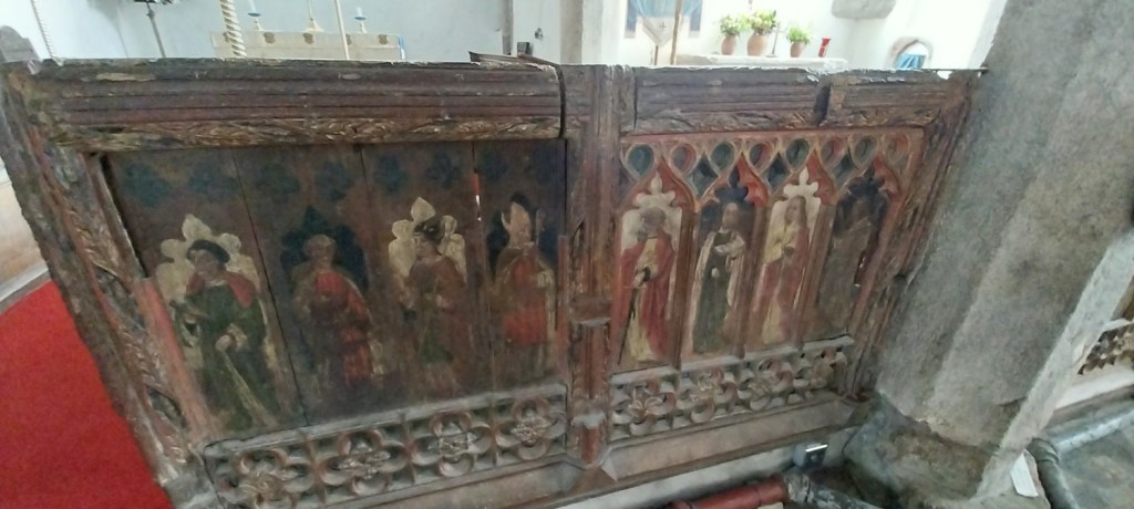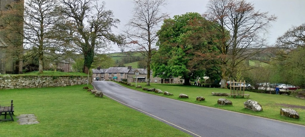 We’d parked in the layby just short of the village. First sight on our left as we enter the village is the tower of St Pancras, Cathedral of the MoorThe village greenThe Church House is on the left here, its a National Trust place and also goes by the name Sexton’s cottage, and is part gift shop, part art gallery. The church dominates this area and we head through the lych gate over there nextInside the church. St Pancras was struck by lightning in 1638 during a great storm, a written description is on 4 large pieces of wood behind me hereThe cut off rood screen, pictures of saints across this and the other 4 parts to my left here.After Widecombe we got on with the walk, here heading out along the lane with Chinkwell and Honeybag tors aheadThe tors around Haytor and Blackslade Down are above usPonies at Wooder ManorMossy walls on our way to the Miolstone, which is exactly a mile from the church step in WidecombeStout’s Cottages, there are two and we had a nosey around the outsidesBluebells in the garden of the cottagesWe were a bit taken by the cottages and on leaving a car stopped and asked if we were the owners, I guess plenty of folk wouldn’t mind refurbing the place. We had walked by the Miolstone at this point looking at the fields holding llamasNearing Natsworthy and looking at the back of Honeybag TorNatsworthy ManorOn to the moor proper now, Hameldown up to the left here, we won’t be heading that far up, just about 2/3rds of the way and left contour around leftAlong the valley to Widecombe, Honeybag and Chinkwell left, rising up to Hameldown on the rightLunch spot looking to Honeybag and Chinkwell Tors. peeking up between the two of them is Haytor, and back right is Rippon TorLinda contour walking along the side of HameldownLooking back at the Natsworthy area. Easdon Tor back centreA place called Bagpark is below. Chinkwell Tor is left and Rippon Tor is the high point back right, way in the centre at the back is Ramshorn DownThis little one came running up to us, assuming we were in charge. Thankfully mum was bleating a hundred yards away and this one ran off looking for her.Wooder Goyle Rocks, more in the trees down on the left hereClitter around the Wooder Goyle area, Hameldown is up there to the rightWidecombe comes into view now as we look for the gate in the corner to take us down the laneSt Pancras sticking up as we walk along the laneA drink to finish before heading home to do more gardening to try and wrestle our space (and plant lots of flowers and veg) into something nice for the summer monthsOld Inn, WidecombeA bit brighter to finish than when we started, but this is a good walk for a day like this, not too much sunshine, so stay quite low and enjoy the lanes.
