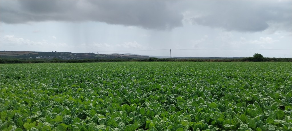 Fields of cabbage, we’d stood under a tree for 5 minutes whilst that heavy shower passed over us