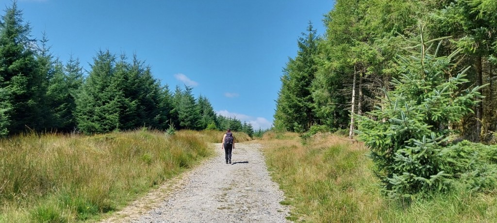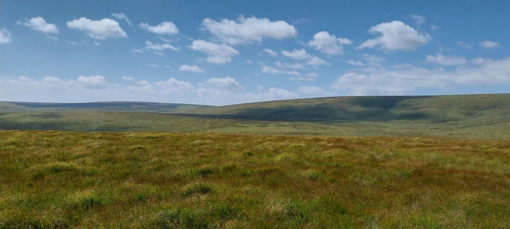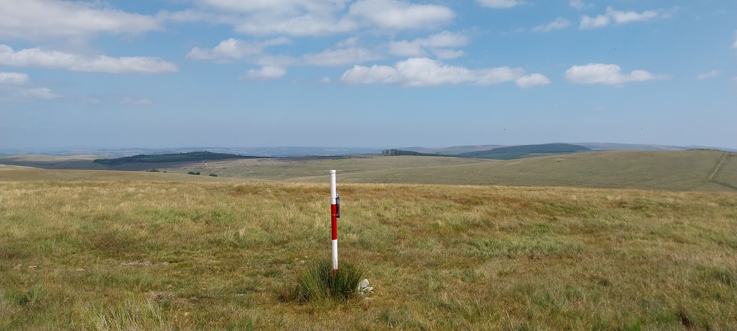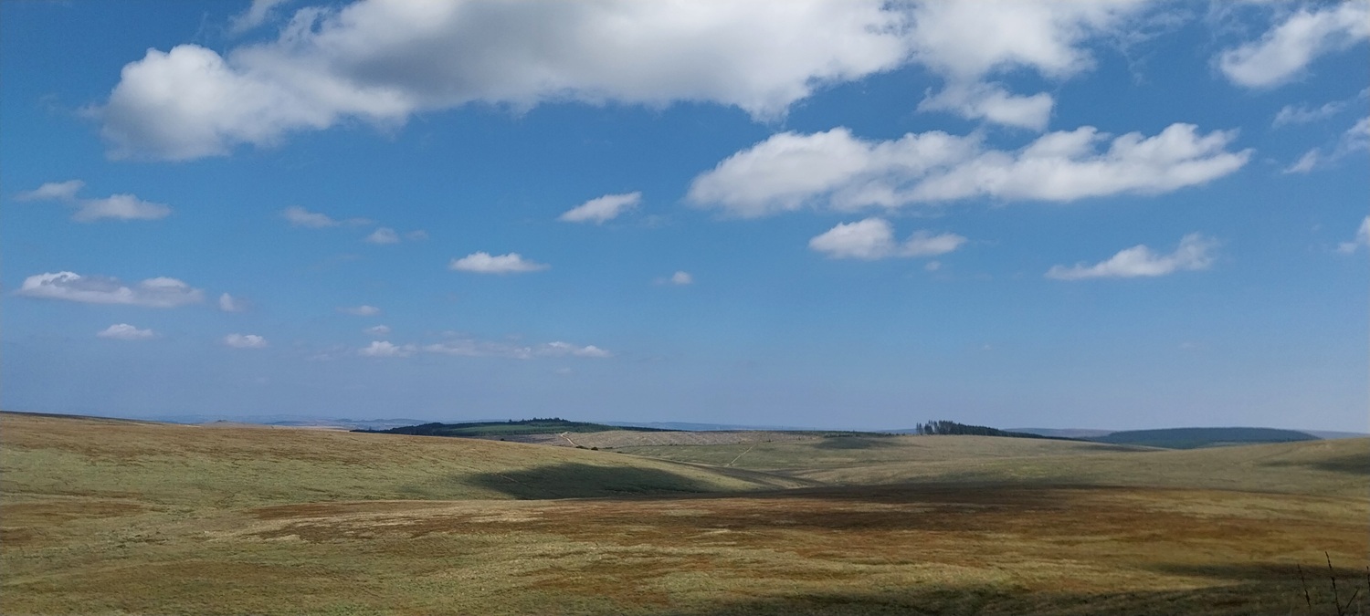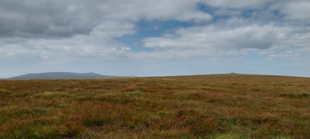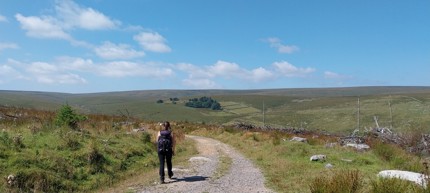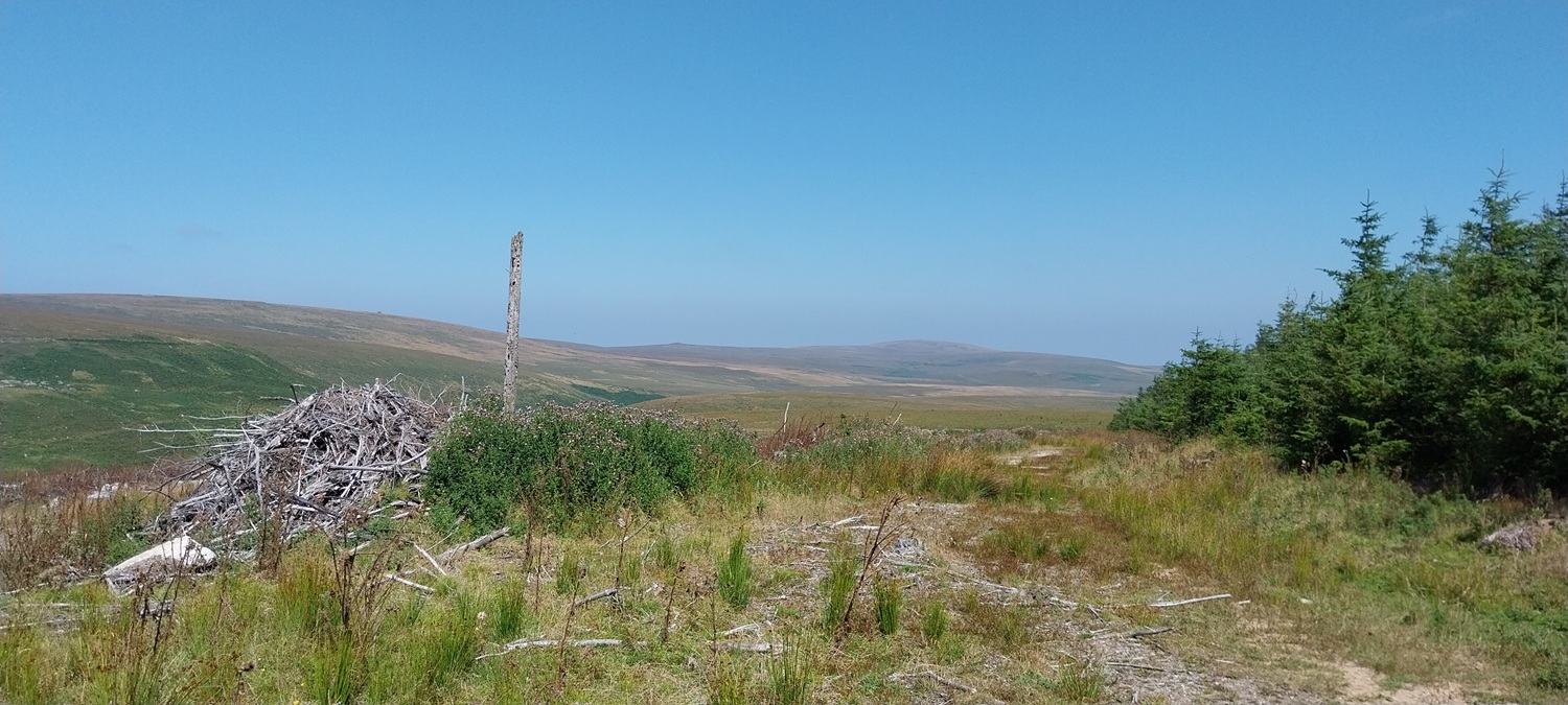 The car park around the far side of the reservoir, gives good access to this side of the moor. Sometimes its closed off for logging, but not this timeFernworthy Stone Circle, there is also a small stone row running away in that directionIt was hot walking up here, Linda is heading towards the edge of the forest and the open moorlandCosdon Hill in the distance, a fair bit of tree clearance has taken place here, leaving the usual upright trunks and piles of dead wood, plus the sprouting new fir trees that were waiting for some clear sky and open air to get goingTeignhead Farm is in the trees over there, we are heading there next. But not before stopping for a coffee by the gate in the wall and having a chat with the local farmer who was looking for his herd. Most were lay by the Teignhead clapper, but he was missing five “red” ones, so he headed off for Sittaford Tor on his quadTeignhead Farm, the farm was in use until 1943 when the MOD took over control, and then never gave it back after the warFernworthy Forest, you can see sections that have been cut down as we head to Great Varracombe, at this point we had followed sheep paths but it was getting longerGreat Varracombe between us and Quintins Man, where clouds shade its flanks and summit. We are heading into the longer grass section with zero pathsWe’ve got through it all now, but we slumped, tired, hot and in need of sustenance on the side of Quintins ManQuintins Man summit, Cut Hill away to the rightThis is the start of the Okehampton range to the west of Quintins Man, as marked by these poles. Sittaford Tor on the far rightShort grass and a dry path took us to Whitehorse Hill and the burial cairn which was found this century, most of the contents are in the Plymouth MuseumHangingstone Hill over on the right and the high ground of Devon to the left with High Willhays and Yes TorStill wet up here in places even with all the dry weather we’ve hadThe peat pass sign takes us off to the east and down the hill, plenty of flying ants out on this walk, literally millions of them on every piece of graniteWalla Brook Head, we contoured around here on our way to Manga Hill. Watern Tor can be seen in the distance and Cosdon Hill back leftCrossing the wall that leads to Quintins Man, this side of the wall is Manga Hill and it was horrific walking across here.Gidleigh Parish (GP) boundary marking on Manga RockManga Rock, looking out across Gidleigh Common, Kes Tor sticking up back right, we will be heading down into the dip to cross the North Teign riverA mini cleave on the North TeignManga RailsLooking back down to Manga Rails, Watern Tor is at the backClouded over a little to the northStone Tor, again Watern Tor at the back, it was a short walk uphill to the corner of a wall, hopping over that takes us back into Fernworthy Forest and the main path back to the carBack on the main path and some good ground under our feet