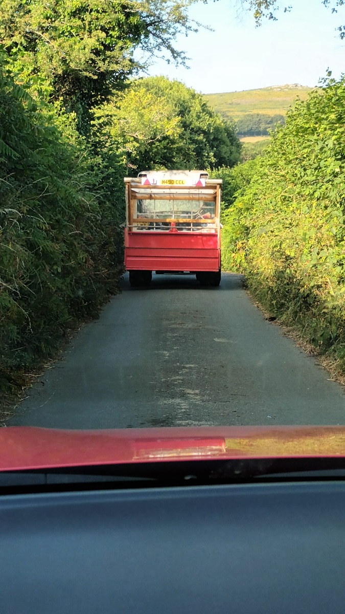 Dartmoor traffic jam, the tractor in front was led by a herd of cows and a quadbike as we drove home.