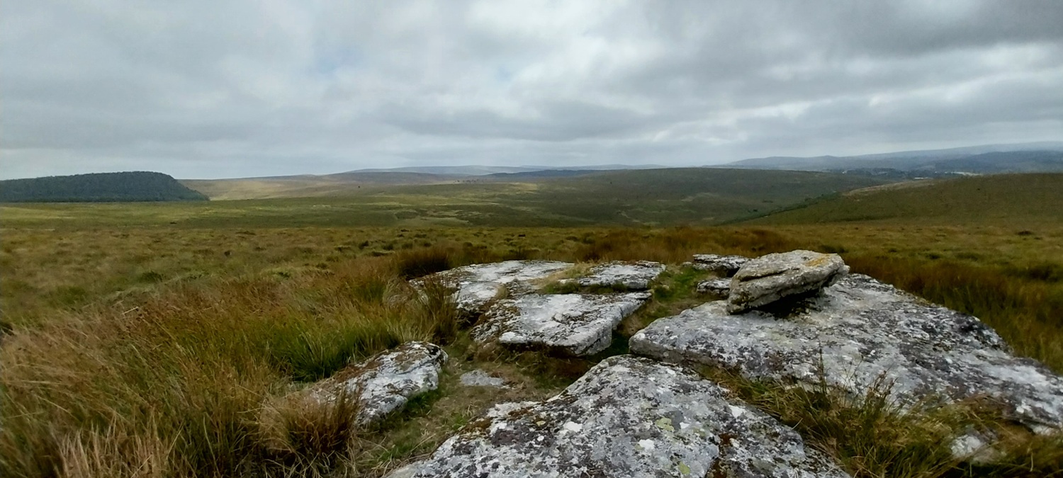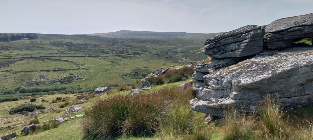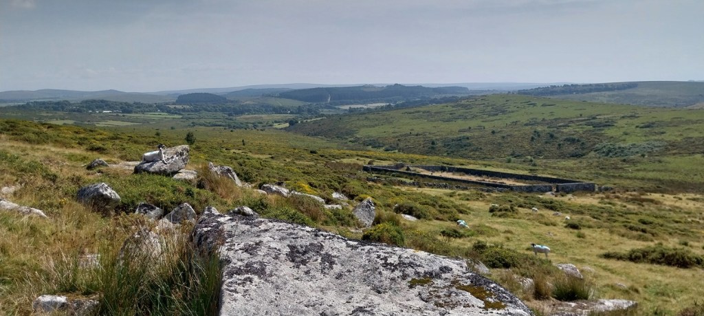 So with the mind firmly focused on a walk with better paths, less long grass, but also including some of the boggier bits if possible and continuing to take advantage of the dry year. We set out on a walk from Postbridge with the plan to reach Sittaford Tor but pick off the tricky White Ridge Tor if possible. Parking up opposite the pub (always the plan to head into the East Dart Hotel at the end) we started off along the B3212 towards Higher Merripit, passing Postbridge Church on the way. It had been a while since I’d walked out to Stannon Farm and I turned right too early, meeting the farmer who corrected my error and put us on the correct path. Before long we were standing by the old farm, turned outdoor adventure centre, and now I’m not sure it is anything as it looks worn. We didn’t linger and climbed behind the house to Stannon Tor, stopping for a coffee, and views out towards Hameldown, as the sun threatened to break through. Next was the tricky bit, but I needn’t have worried, as we found a good path looping around the head of Stannon Brook and up to White Ridge. We descended before climbing again to Sittaford Tor and lunch, the sun came out and gave us some lovely 360 views, including into Great Varracombe, scene of our walking horror a week earlier. A good path took us down to Grey Wethers and back towards Postbridge, following tracks we found some longer grass for a short section before locating The Sheepfold. Or is it a Starch Factory? We then headed for Hartland Tor, mine and Linda’s first tor together on or first walk (3 years ago)! All that was left was a simple drop down to Postbridge, a quick look at the busy clapper bridge and a nice pint in the East Dart (as we did 3 years ago). A better walk than the week before and still good weather, I’ll call that a win!