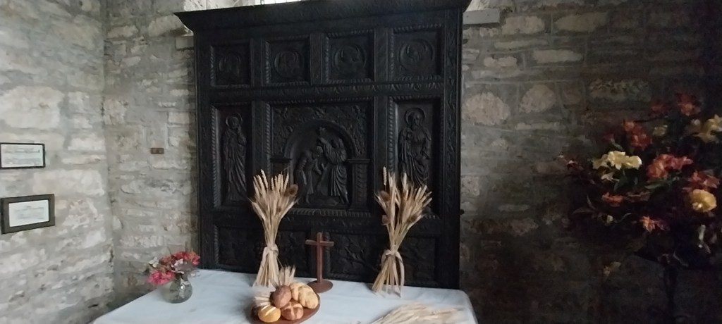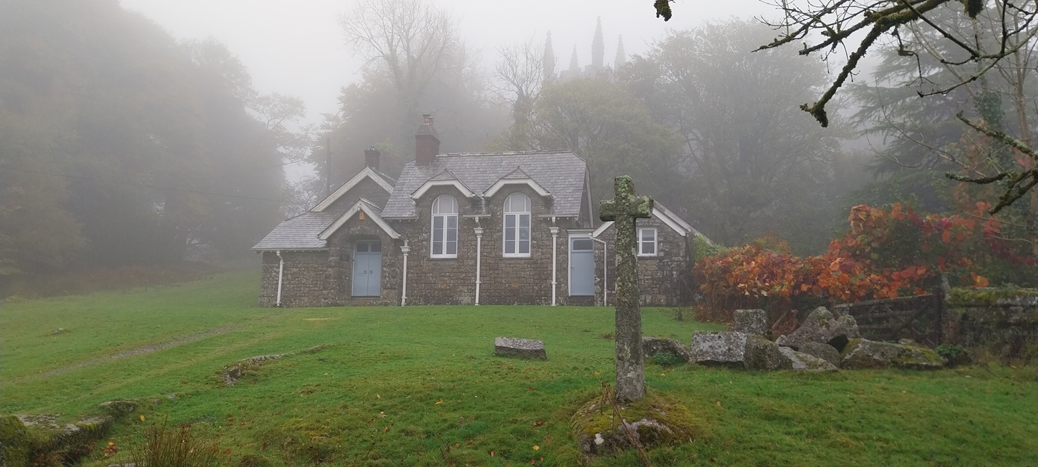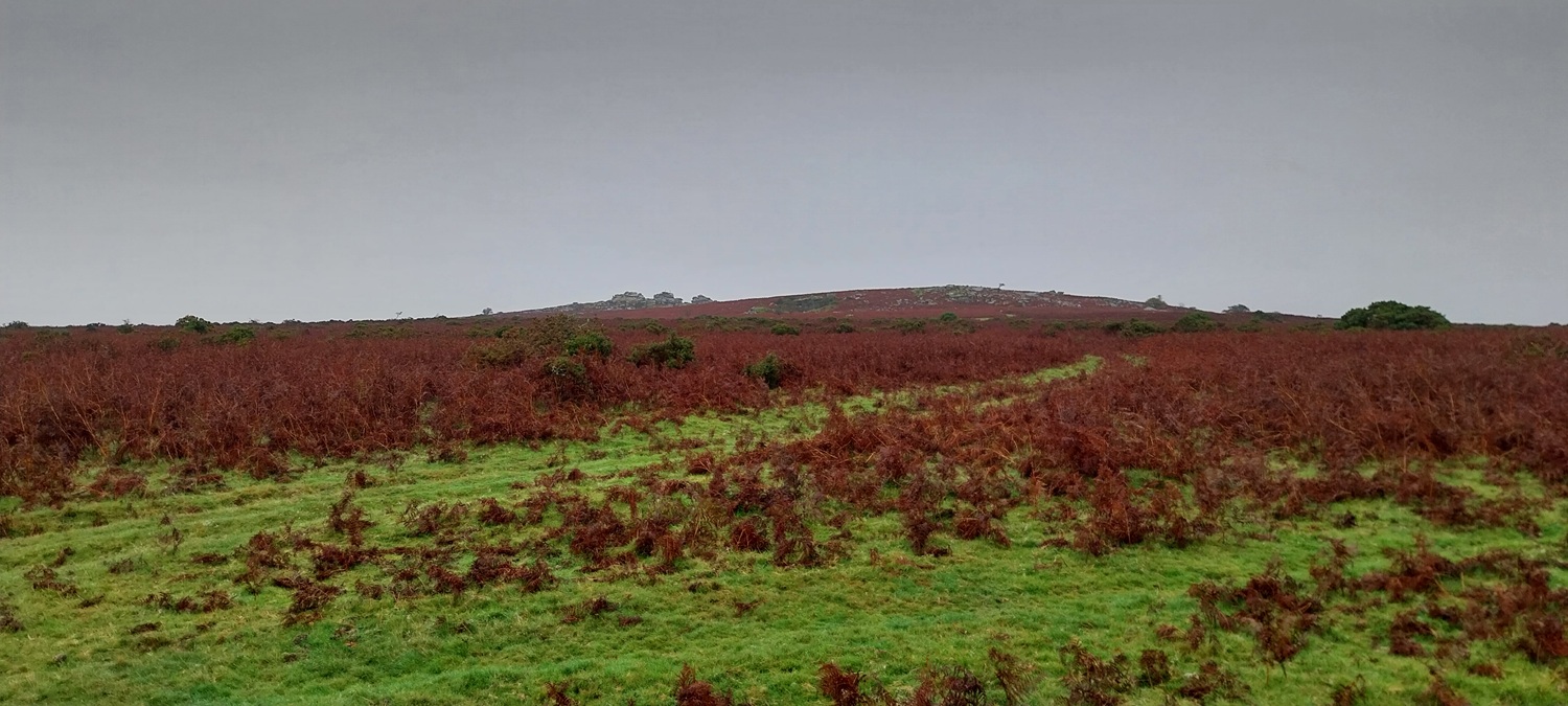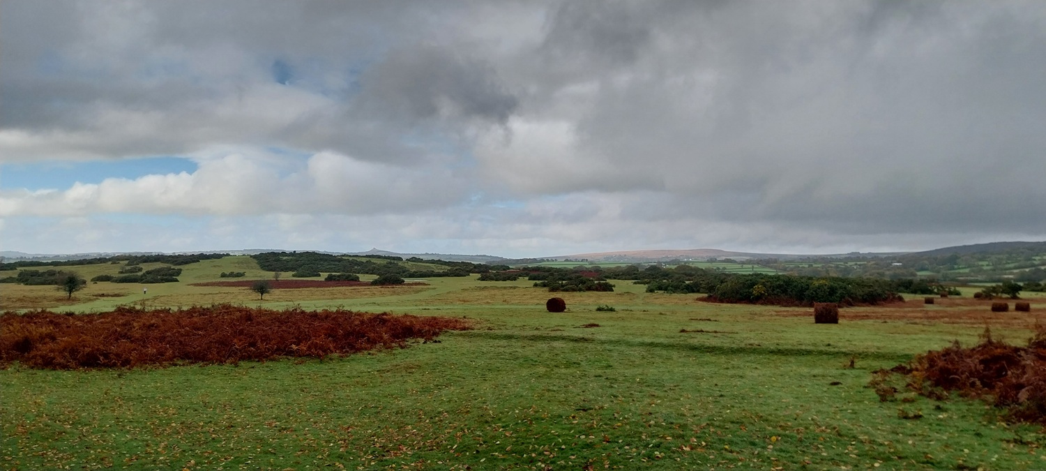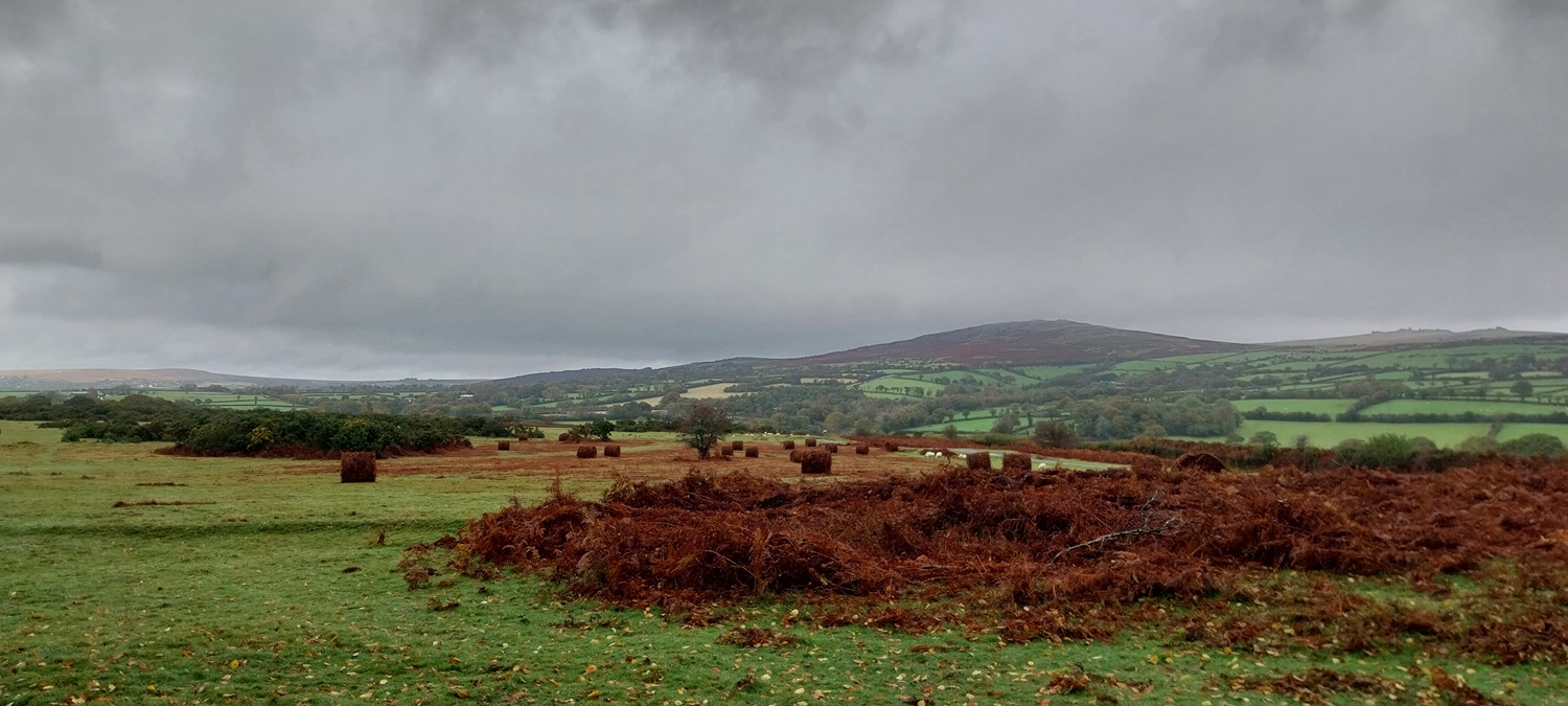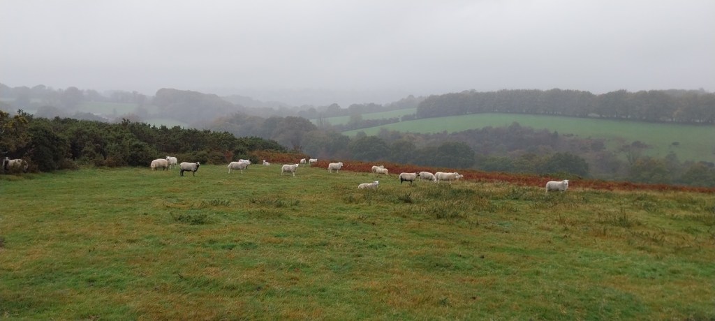 Looking out across Whitchurch Down in the direction of the golf course, by this point we’d driven here in rain, sat eating sandwiches in the car watching the rain and then booted up in the rain. So we headed out in the hope the forecast would turn out rightTavistock golf course is reached, and the advantage with the falling rain here is we can walk across without worrying about avoiding the playersPixies Cross, one of the Dartmoor squares todayA narrow valley which runs towards Taviton Mill House and on to the River TavyThe brook here heads through the valley in the photo above, emptying into the River Tavy, in the trees is the hard to photograph Furzey Lane Bridge, any grassy bit around here is pure soft bog, it took me a few minutes of hopping to get to this spot and still I couldn’t see itSo I took a photo from the road as wellStill raining and still smiling. Credit to Linda who’d done a couple of goes at re-waterproofing our jackets and trousers. They held up well hereThrough a nice bit of woodland, along a path that links Furzey Lane bridge with …………Pennycomequick Bridge, another that was shy and hiding behind a treeWet lanes as we walk to Sampford SpineyGeorge 6th post boxThe brilliantly named Grimstone and Sortridge leat was crossing the moorland and we came to a spot where a bullseye dropped water to a pipe (can be seen as a small spout) to feed a house to our right. There are still a fair few properties across the moor fed by the leats of Dartmoor, the hamlets of Grimstone and Sortridge will no doubt take water from this one.The cloud seemed to drop more and the rain kept falling as we reached Sampford Spiney, this is the old school building with the cross of the village in front. You can see the shadowy church spire through the mist over the treesSampford church, its sits just off the Abbots route between Tavistock and Buckfast, and was visited regularly by those walking to and from, the cross on the green waymarks this church.Inside is a simple affairIt was harvest time when we visitedOn leaving the church we came across huge patches of fungi, this was one of 3 or 4 that we sawNow then what is this, blue sky in the distance. It was around 3.30pm at this point and 2-3 hours later than forecast. Even at 1pm they had it arriving earlier than this, it was like they waited for it to happen before forecasting itPew Tor above now comes out of the cloudBrent Tor away in the distance as the blue sky moves acrossCox Tor is now unveiled as well. Bales of bracken all rolled up, not seen them do that before. Any ideas why they do that?And to finish a similar view as the first one on this walk. Far from a classic but still some lovely things to see.