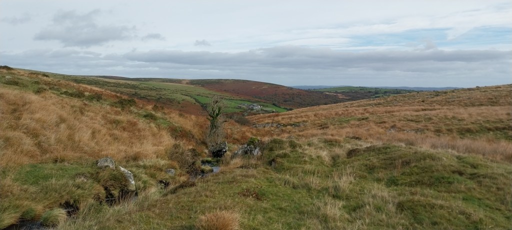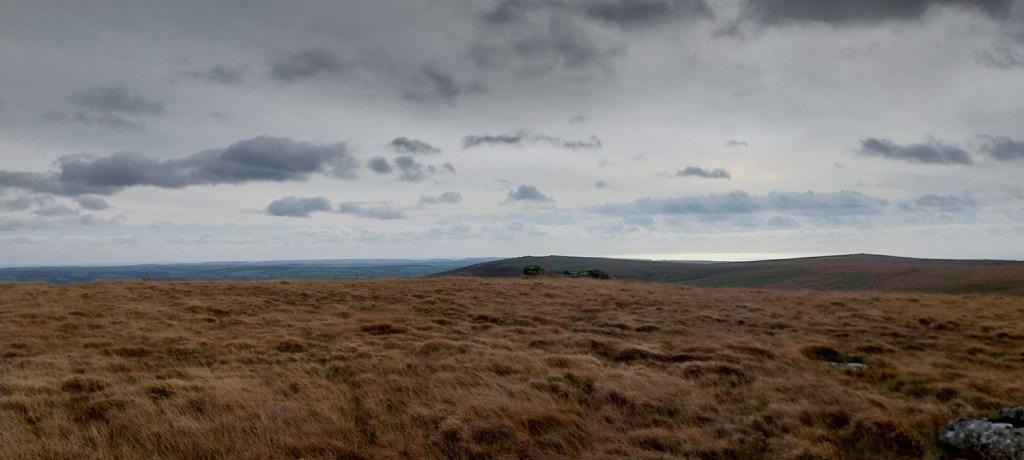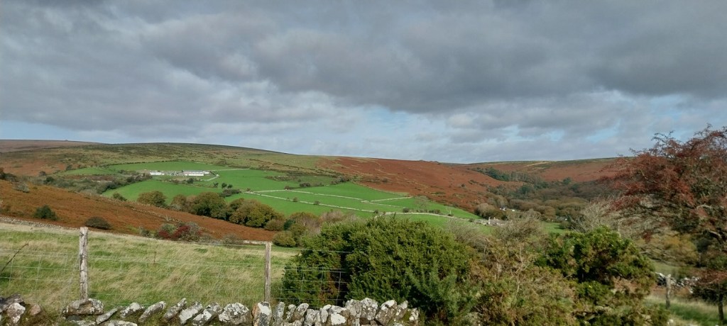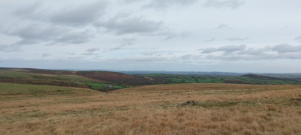 So another trip to Dartmoor but without driving too far, also somewhere I haven’t been around these parts since 2021, so they were due a revisit. Linda hadn’t been to either of these tors, nor the Dartmoor squares involved of Corringdon Ball and Henchertraw, so with the decision made and the weather set fair (and certainly better than our last outing around Whitchurch Down), we headed out. Parking can be busy in South Brent, especially if there is a church service on, but we found a safe spot and started off for Lydia Bridge and the first couple of miles along the lanes. Before long we were handrailing the River Avon, with a healthy amount of water in it, after the recent rains. We turned uphill, climbing a path steeply to Hickley Plain and a stop for coffee, with good views to Brent Hill. We continued to head uphill, crossing the top end of Henchertraw, a narrow wooded ditch which climbs away from the Bala Brook. Next we walked across to Old Hill (feeling a bit over the hill on arrival!!) and found the small tor on its flanks, with some lovely views along the Bala Brook valley greeting us, with South Hams stretching away beyond. We turned and headed for the best named tor on the moor, Wacka Tor, a number of outcrops here, and one shielded us from the wind as we ate our lunch. A simple descent down the front of Wacka Tor had us at Corringdon Ball Gate, a grand looking gate in a wild spot. We next followed the lane after the gate, dropping down to Aish and the lane back to Lydia Bridge and South Brent, popping into the church to have a look around before heading home. A lovely walk, stayed dry throughout and a good length of walk for the shortening days. More of this through the winter please!