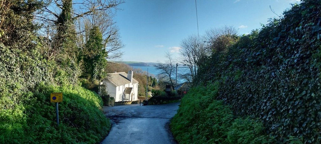 That is Stoke House down there, the caravan park is below that and Bigbury Bay can be seen stretching out on this glorious winter day. We’ve parked on the right just out of shot in a small car park and we are heading first for Noss Mayo via the lanes.