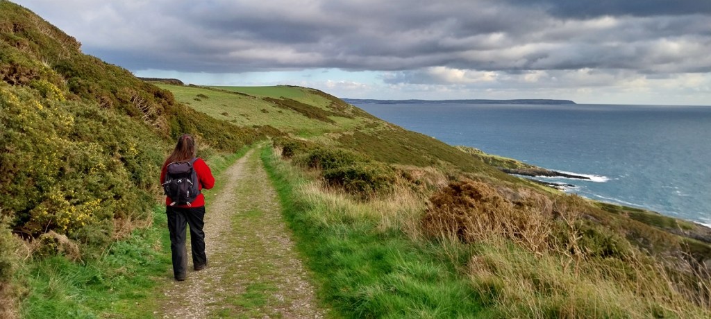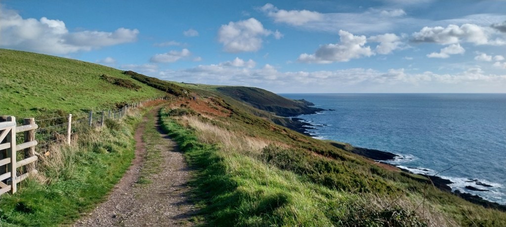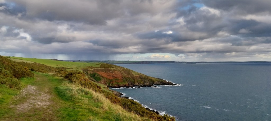 Heading to Stoke Point with Bigbury Bay beyond. The point in the distance out to sea is Bolt Tail