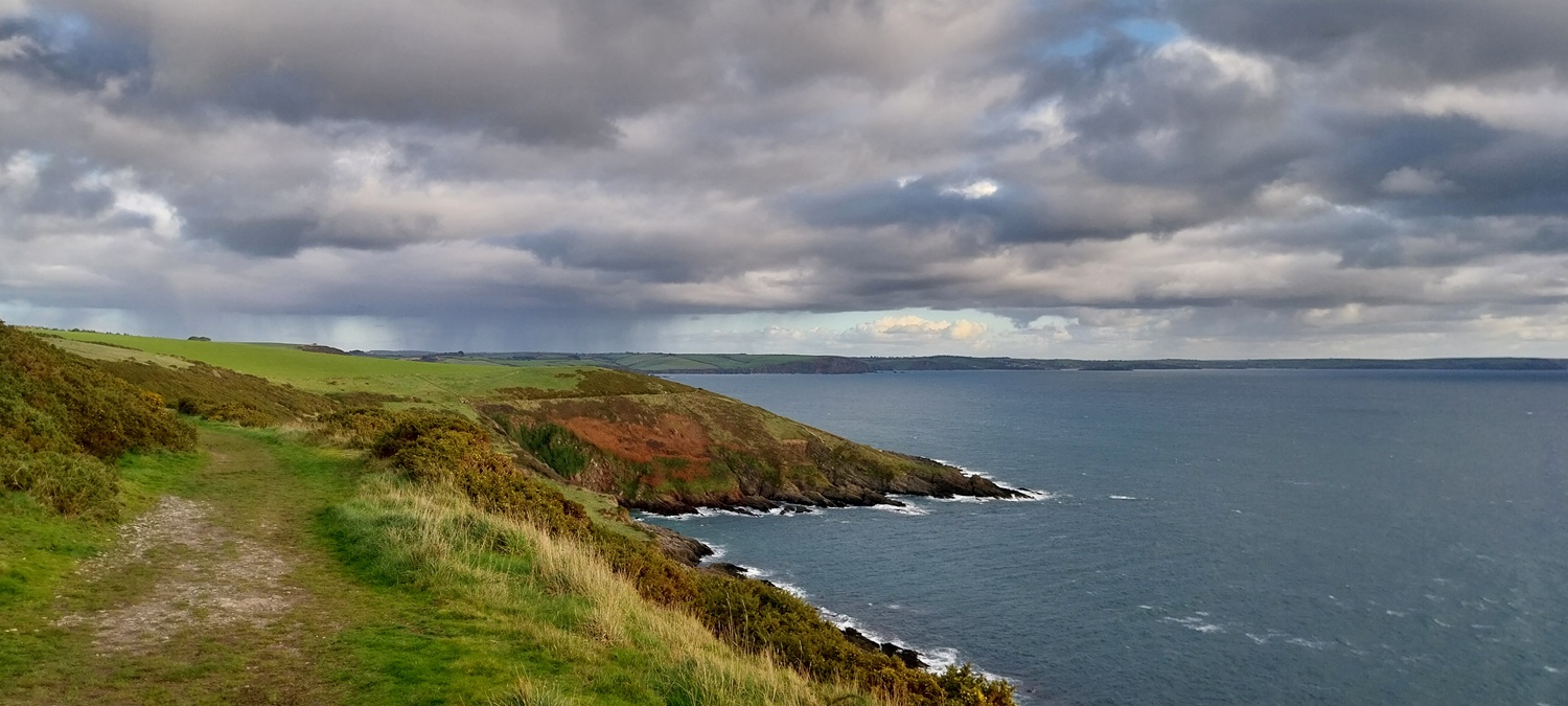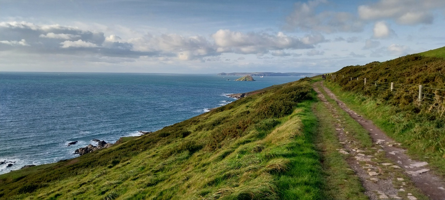 Heading around to Gara Point you get lovely views across the bay with the Mewstone sitting prominent. Above the Mewstone is Rame Head over in Cornwall